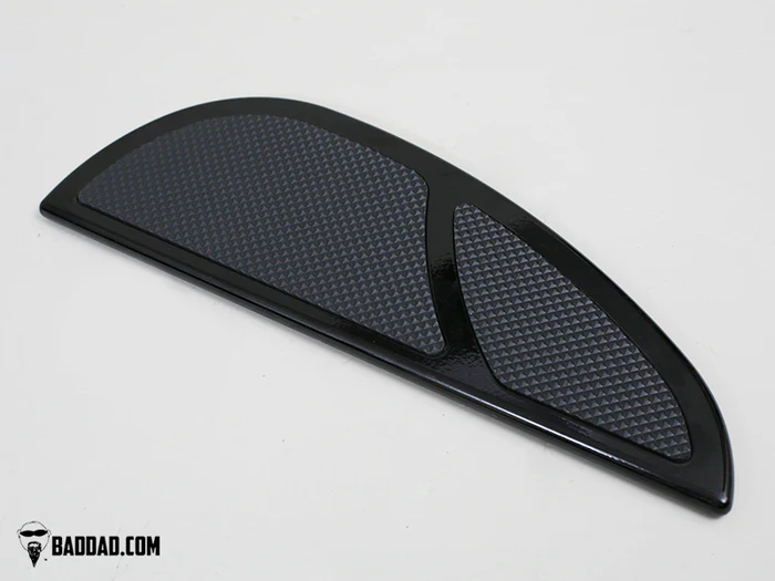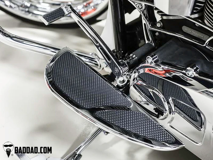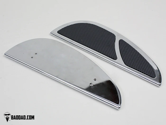 Bad Dad’s 905 Front Floorboards are the next addition in our series of custom floorboards. These custom floorboards are CNC machined from 6061 aircraft grade billet aluminum and are available in black powdercoat and chrome. Bad Dad’s floorboards are finished with a high-quality custom cut rubber insert for a great look and comfortable ride.