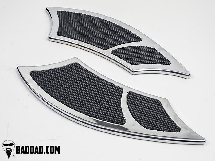 Bad Dad’s popular 992 Front Floorboards are now available! These custom floorboards are CNC machined from 6061 aircraft grade billet aluminum and are available in black powdercoat and chrome. Bad Dad’s floorboards are finished with a high-quality custom cut rubber insert for a great look and comfortable ride.