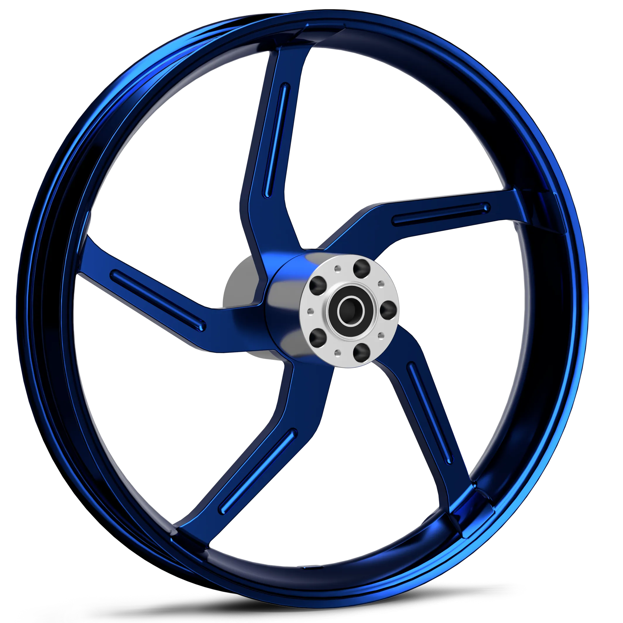 The Aggressor offers 5 slanted spokes that give an aggressive look! This is a similar style wheel to the one that came on the 2015-2017 Street Glide CVOs.