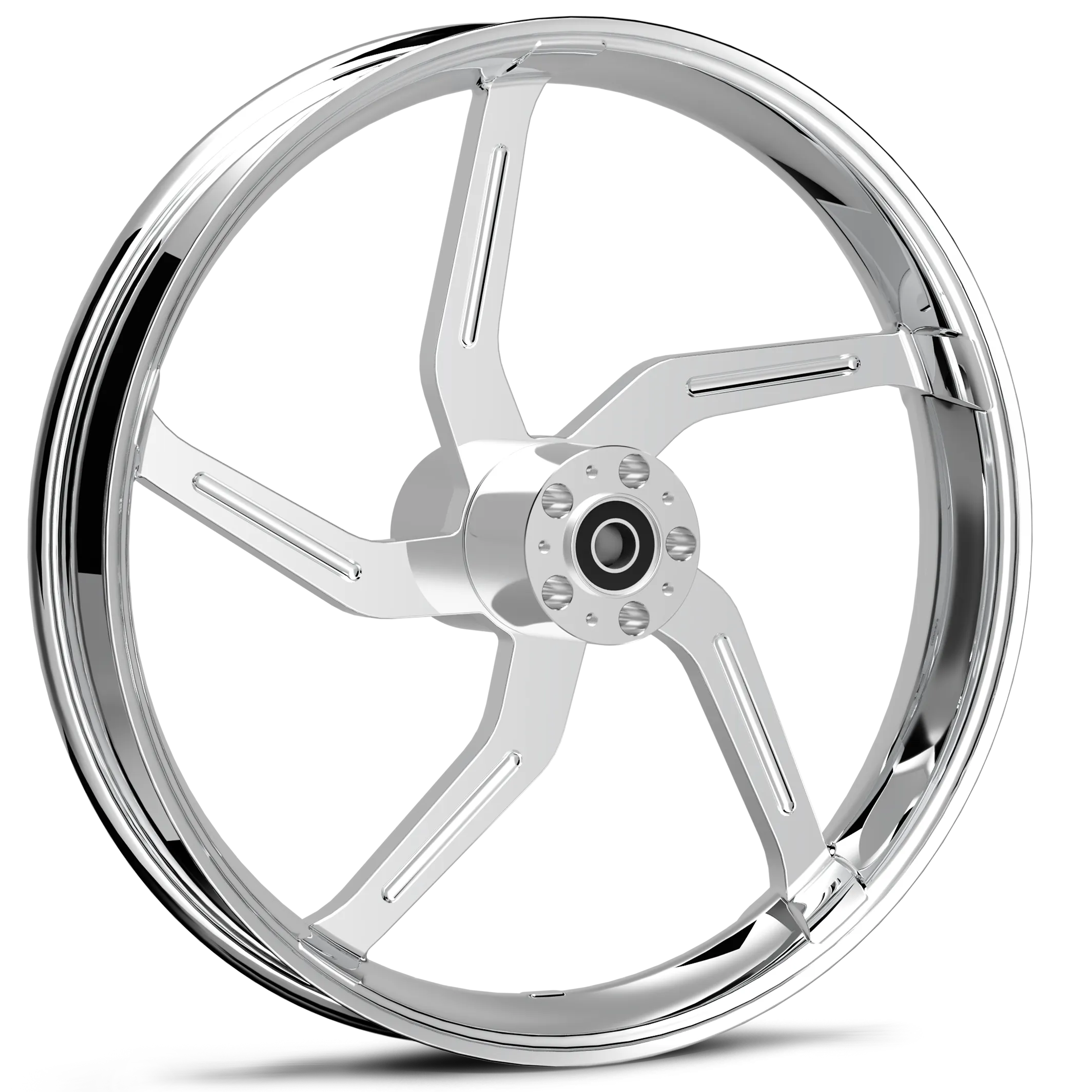 The Aggressor offers 5 slanted spokes that give an aggressive look! This is a similar style wheel to the one that came on the 2015-2017 Street Glide CVOs.