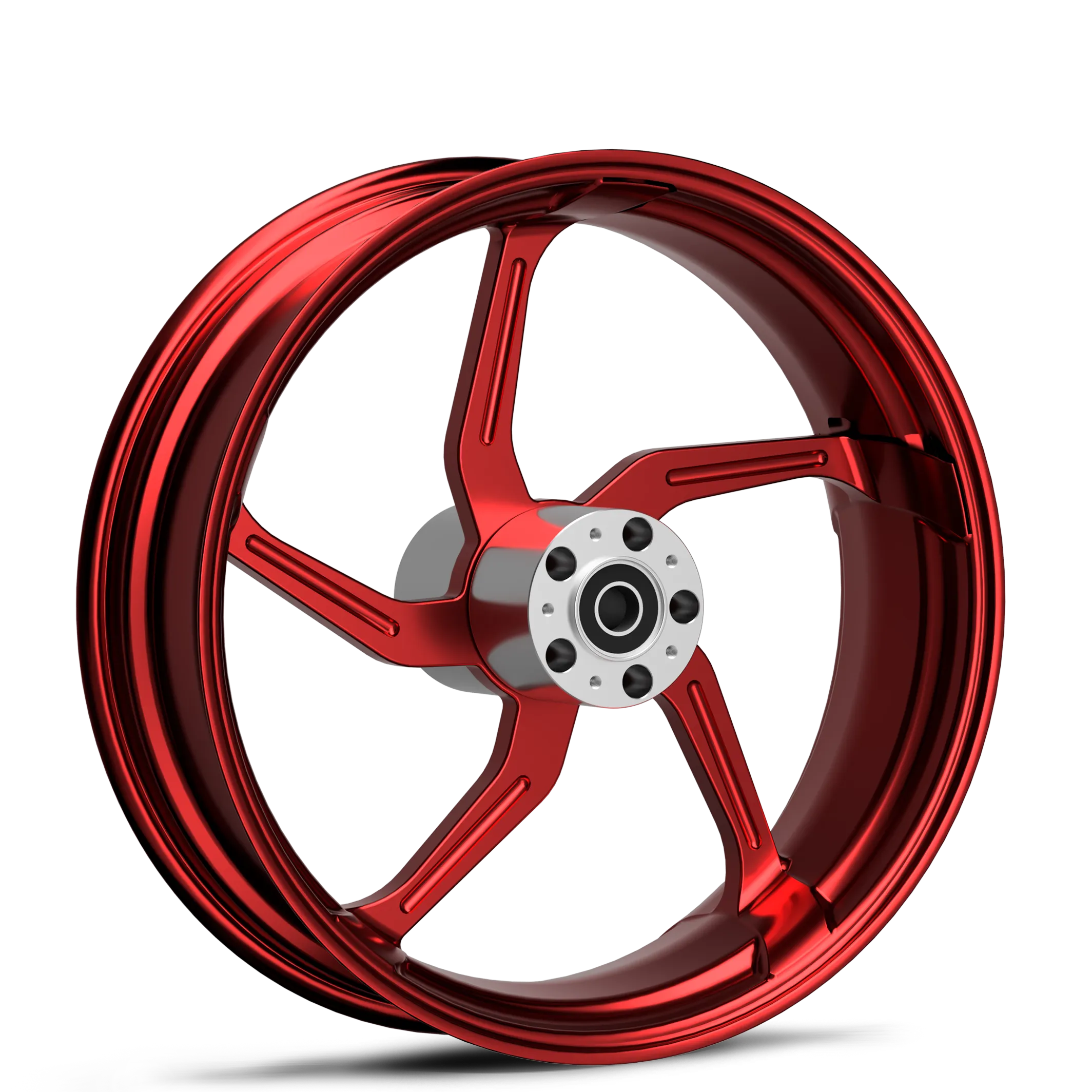 T6 6061 aluminum wheel blank is first sent to be CNC machined into the Aggressor design. Then it’s passed along to be polished to perfection. Finally, it’s powder-coated with a smooth red finish.