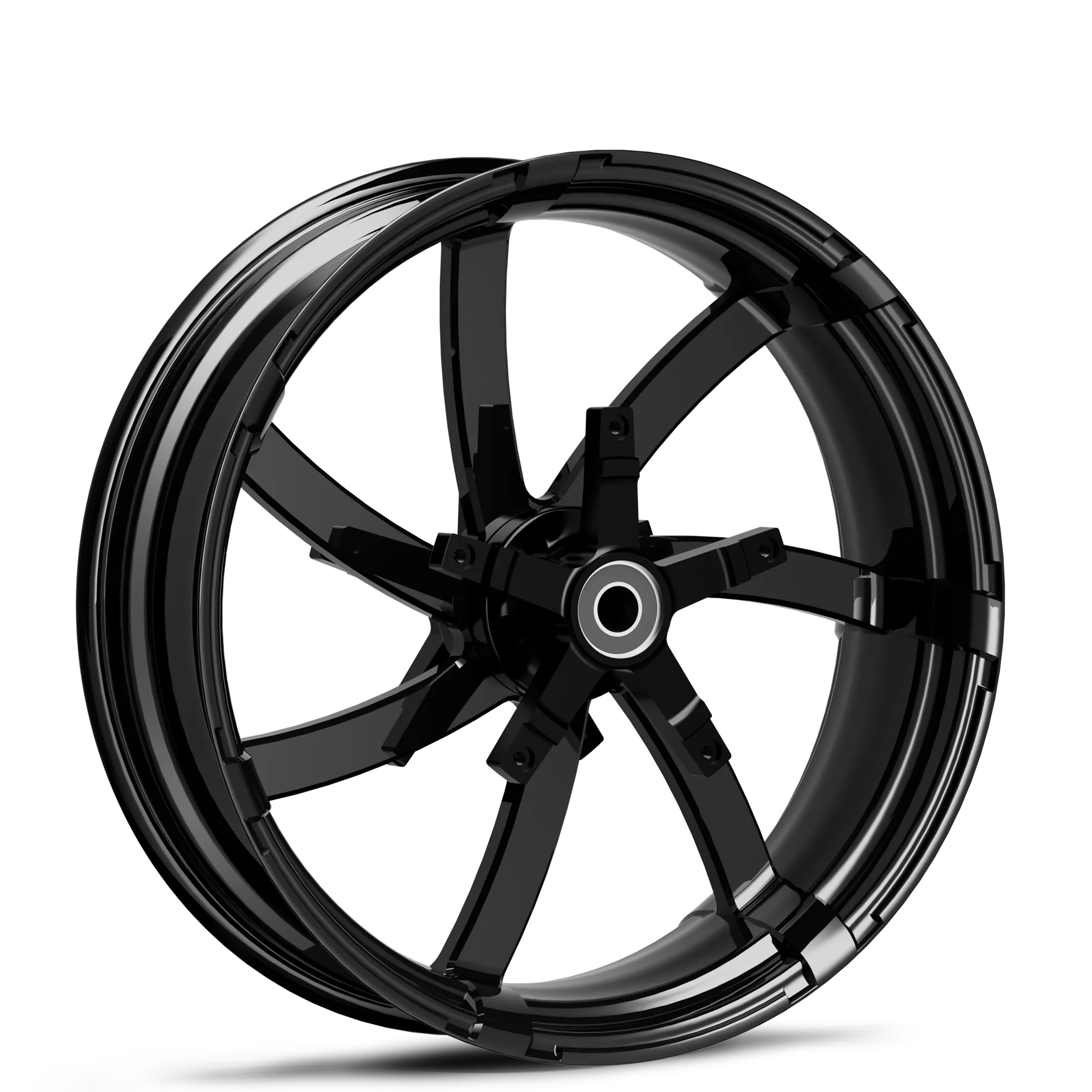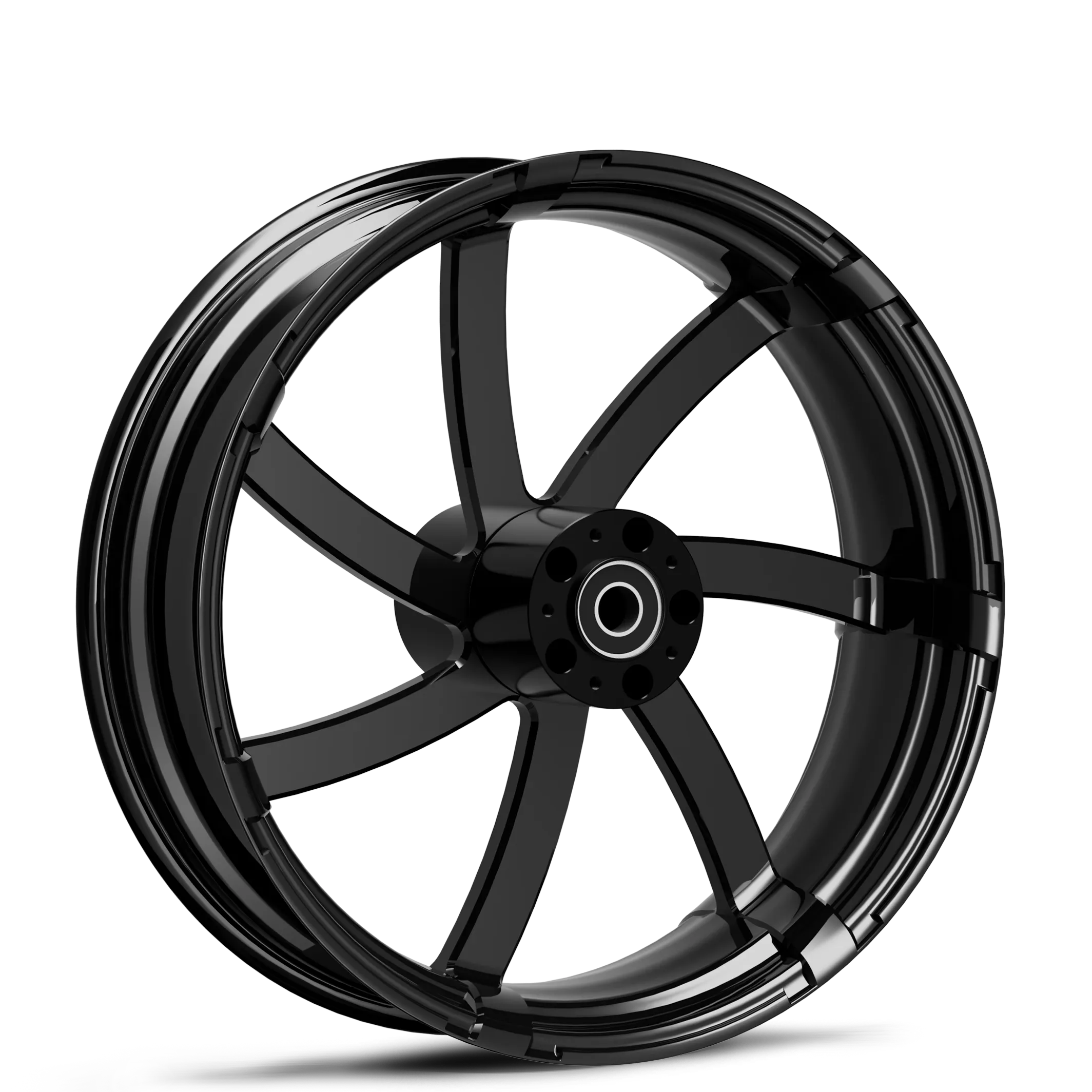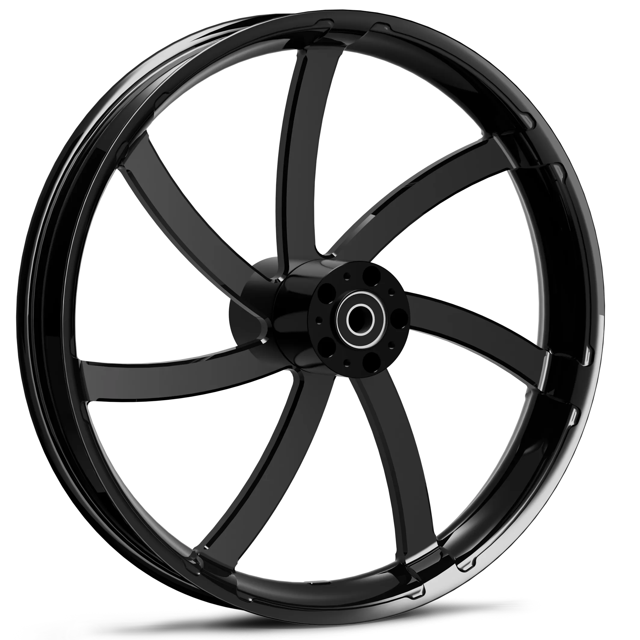 The Agitator offers 7 slightly curved spokes that give a classy look! This is a similar style wheel to the one that came on the 2011-2016 Road King CVOs, 2011-2013 Road Glide CVOs, and 2010-2013 Street Glide CVOs.