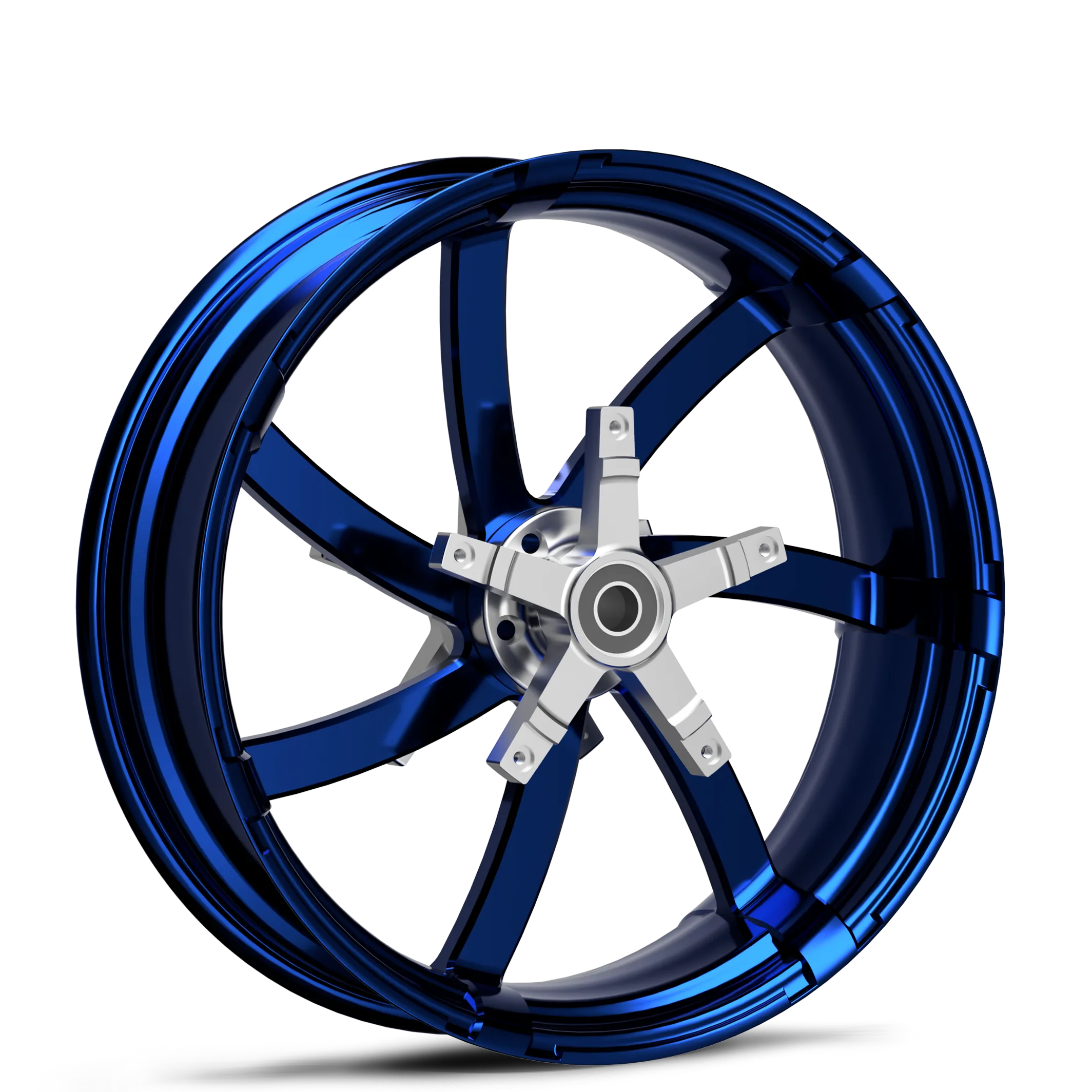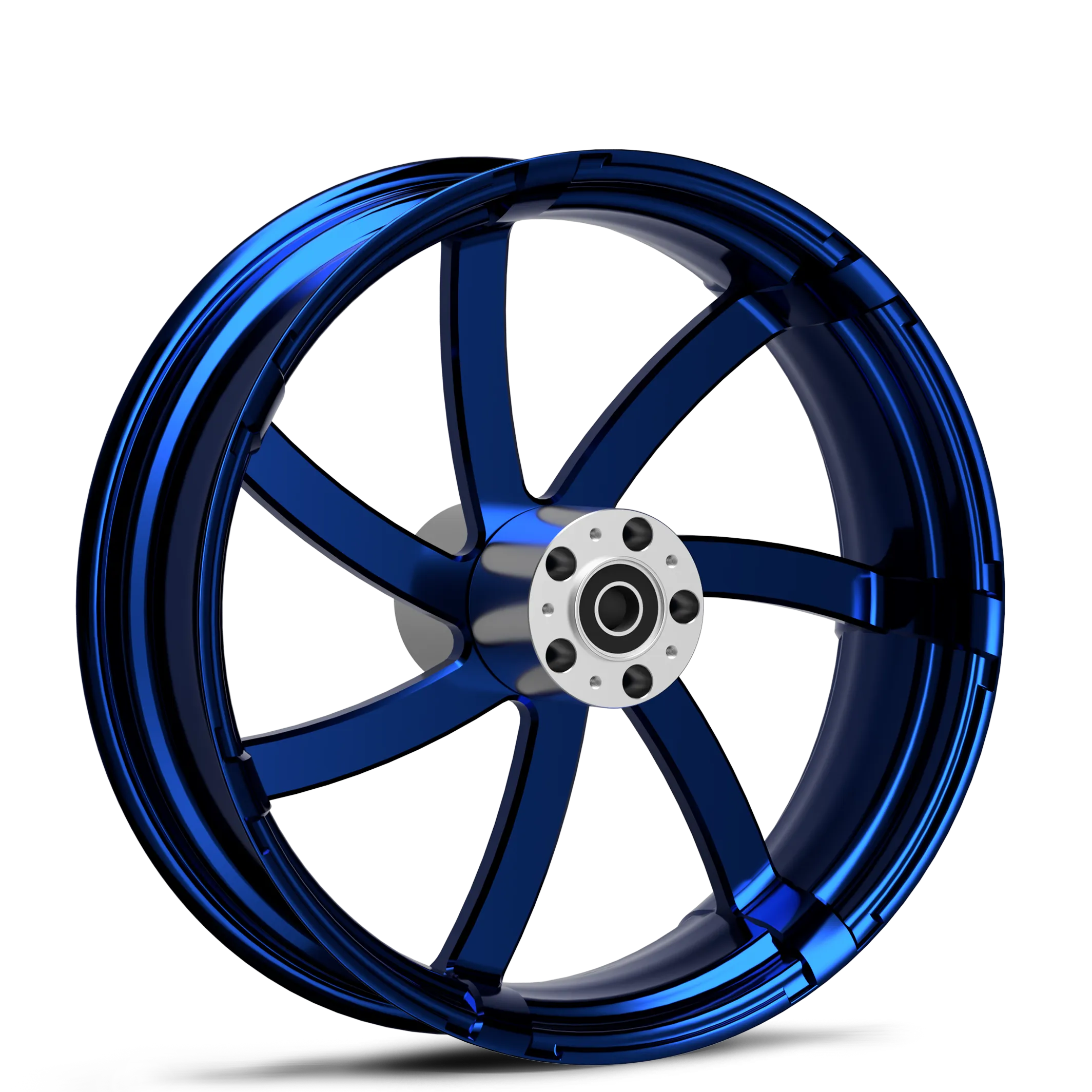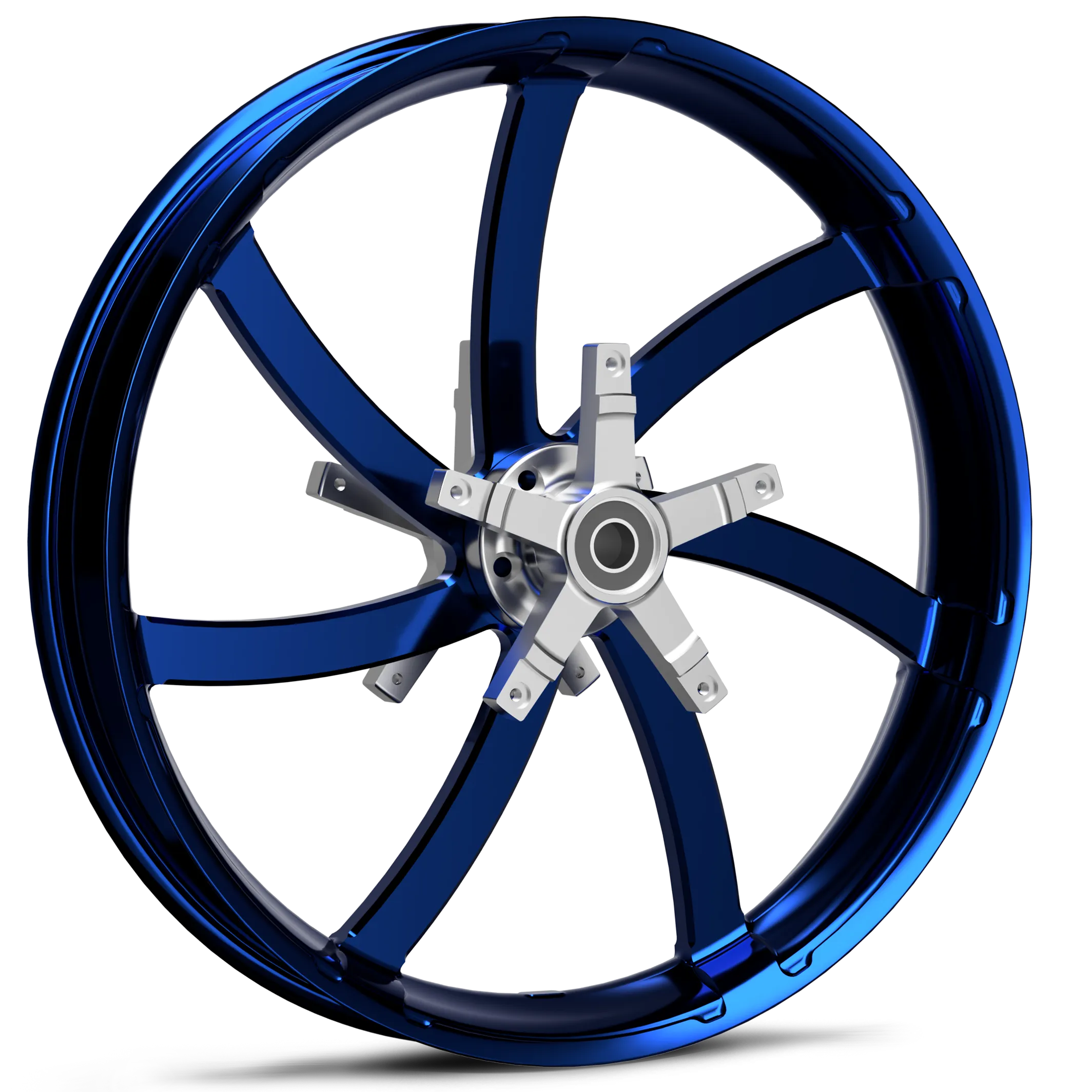 T6 6061 aluminum wheel blank is first sent to be CNC machined into the Agitator design. Then it’s passed along to be polished to perfection. Finally, it’s powder-coated with a smooth blue finish.
