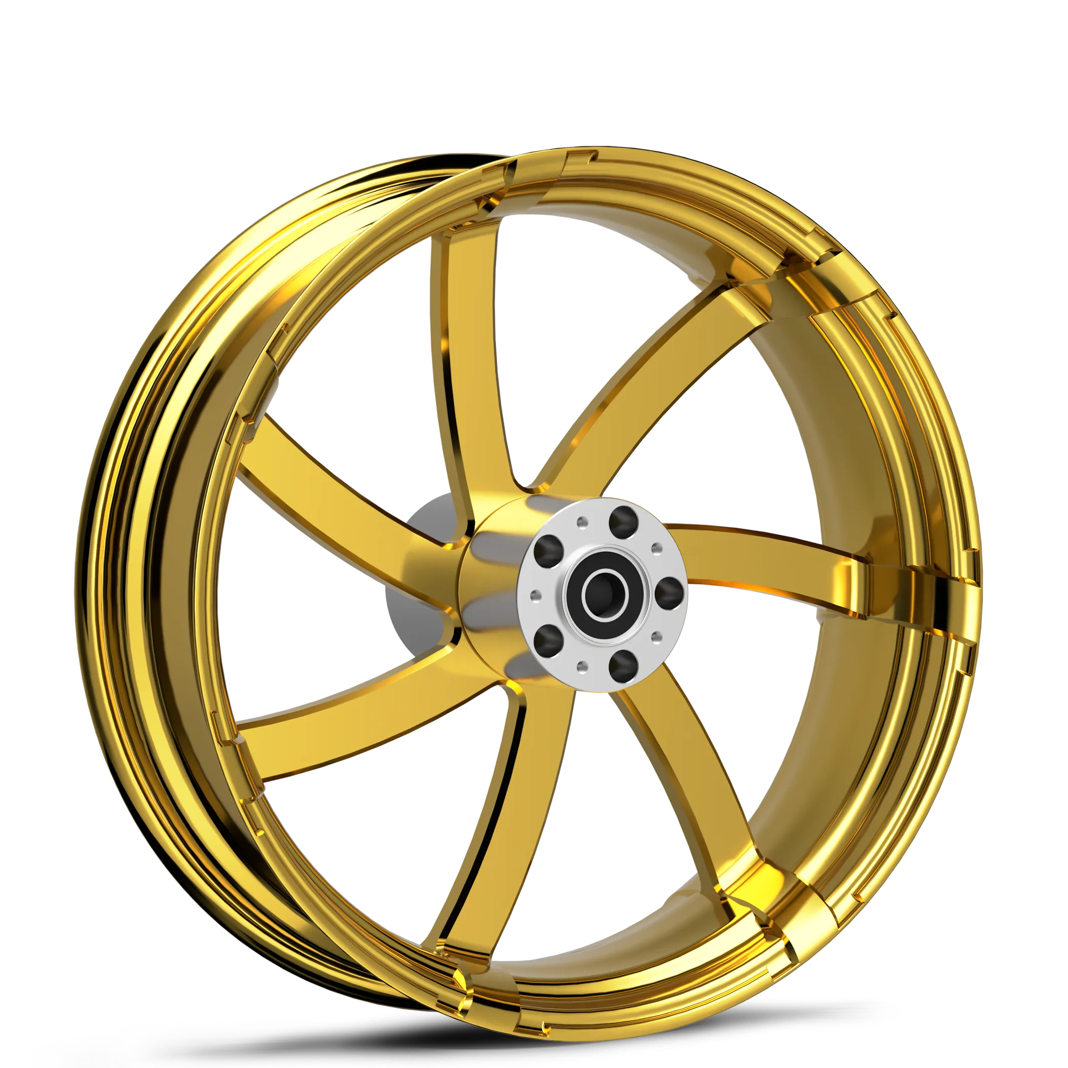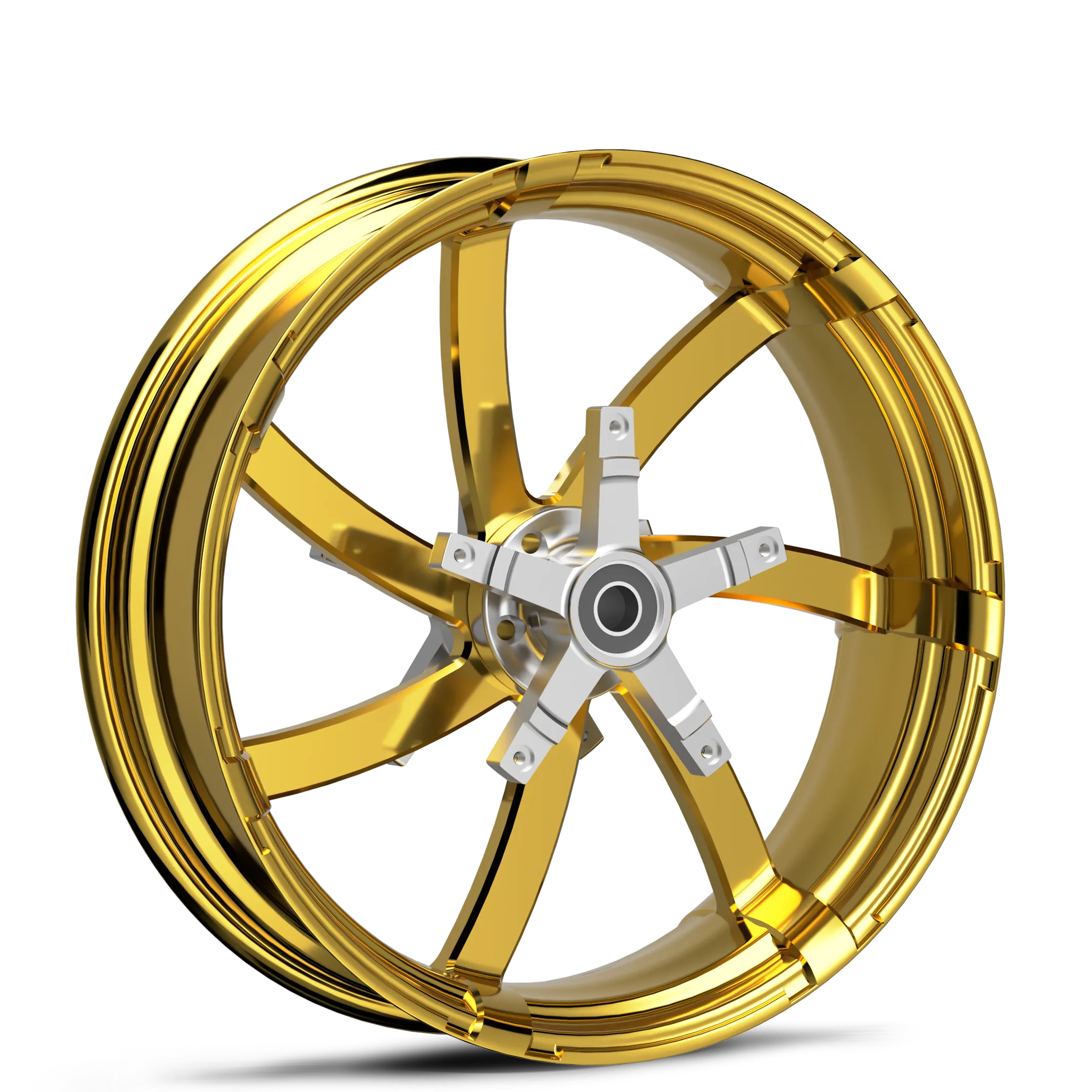 T6 6061 aluminum wheel blank is first sent to be CNC machined into the Agitator design. Then it’s passed along to be polished to perfection. Finally, it’s powder-coated with a smooth gold finish.