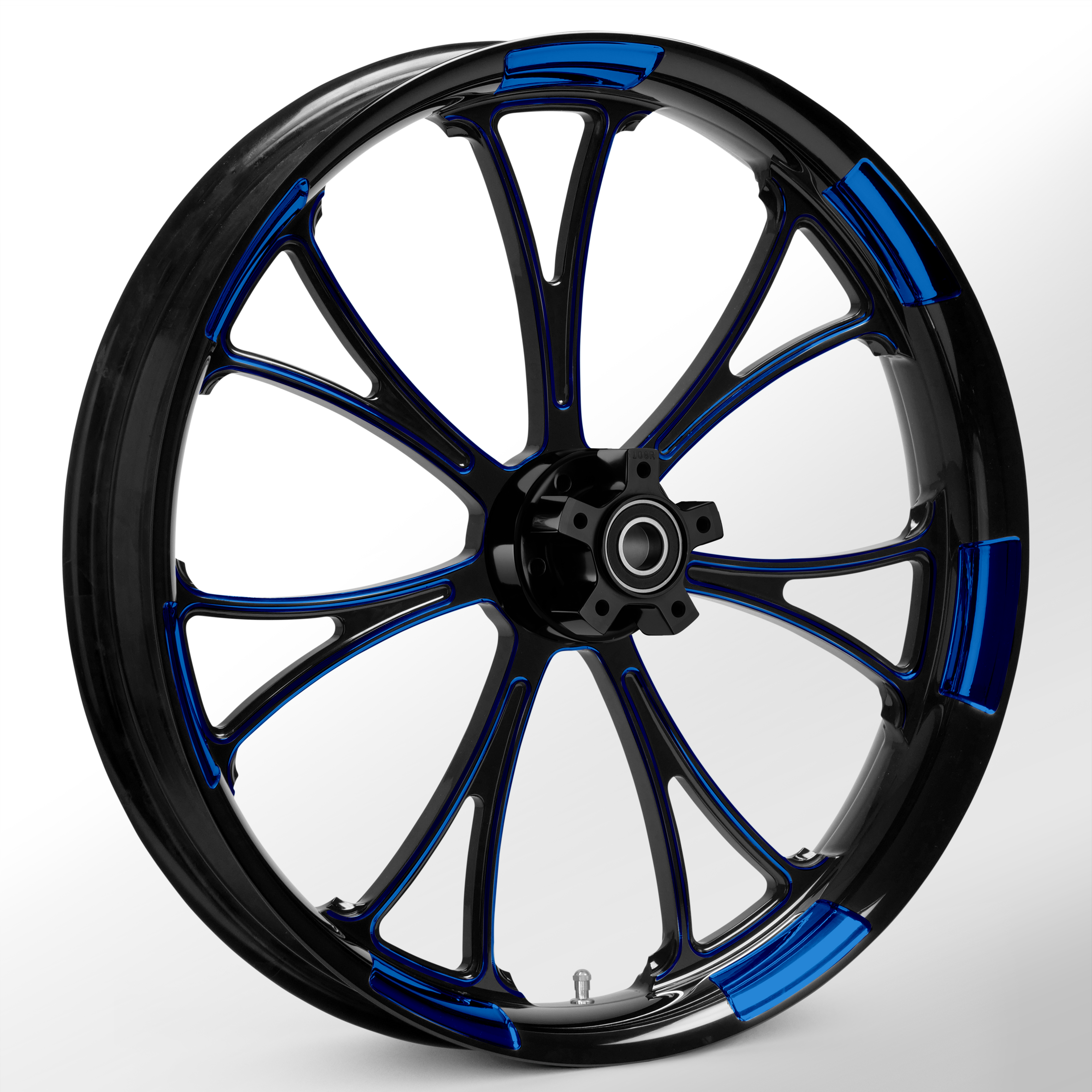 This Arc Dyeline Touch Of Color Blue 18 x 13 Wheel is an American made Forged wheel that is designed to give you the best ride possible! Made in California it starts with machining that’s twice as time-consuming as the standard motorcycle wheel for more depth and more detail! We all know the little details matter! It is then polished and sent to Chrome or Black anodize to give it that perfect shine!