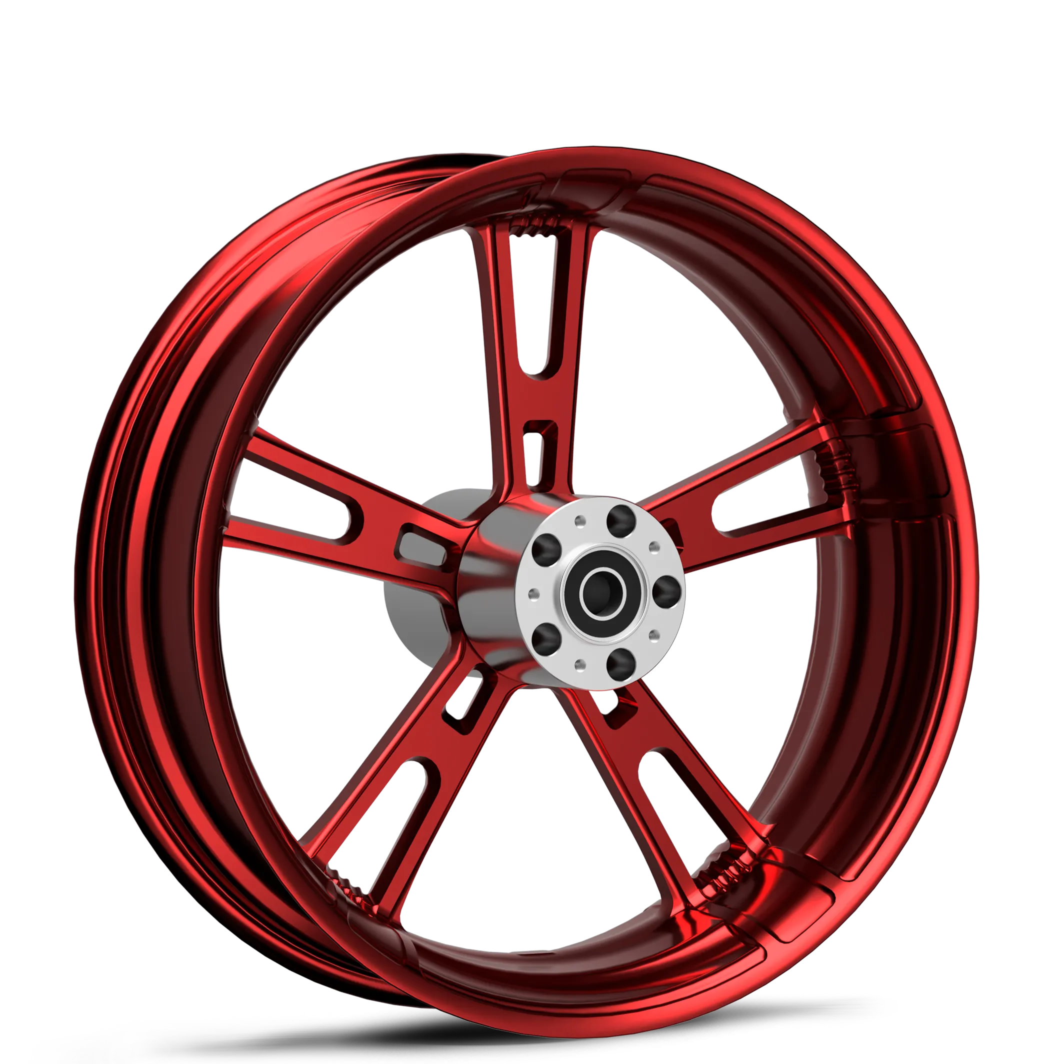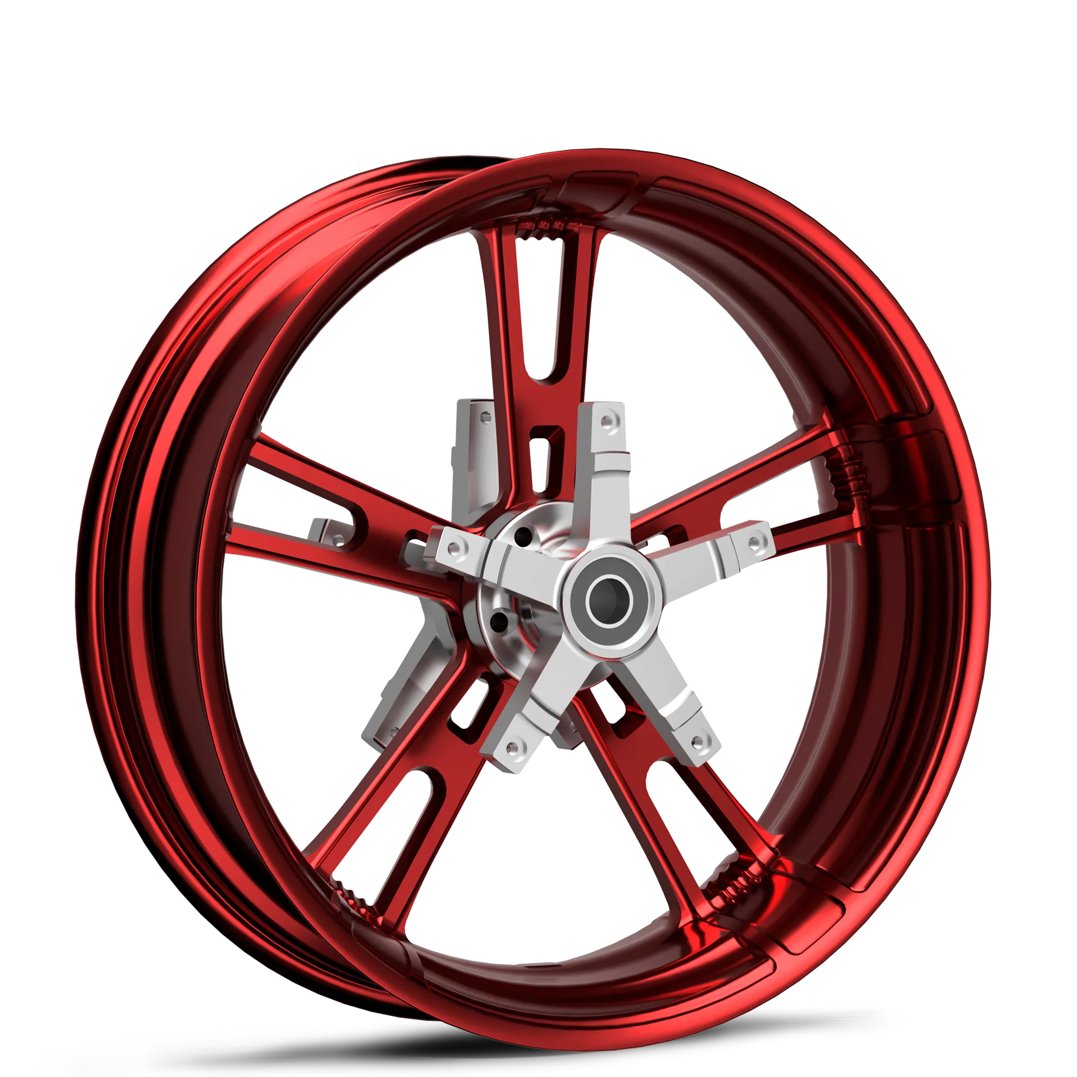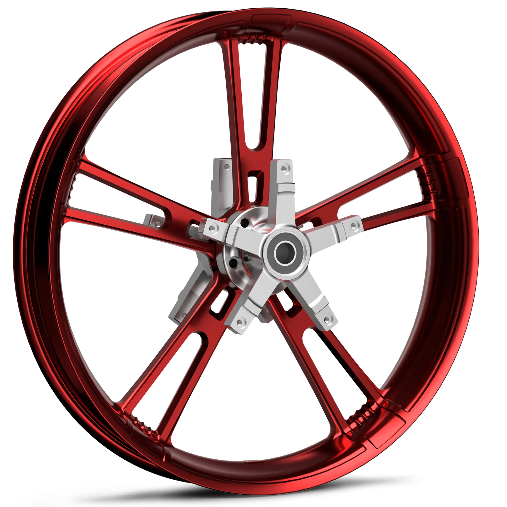 T6 6061 aluminum wheel blank is first sent to be CNC machined into the Enforcer design. Then it’s passed along to be polished to
