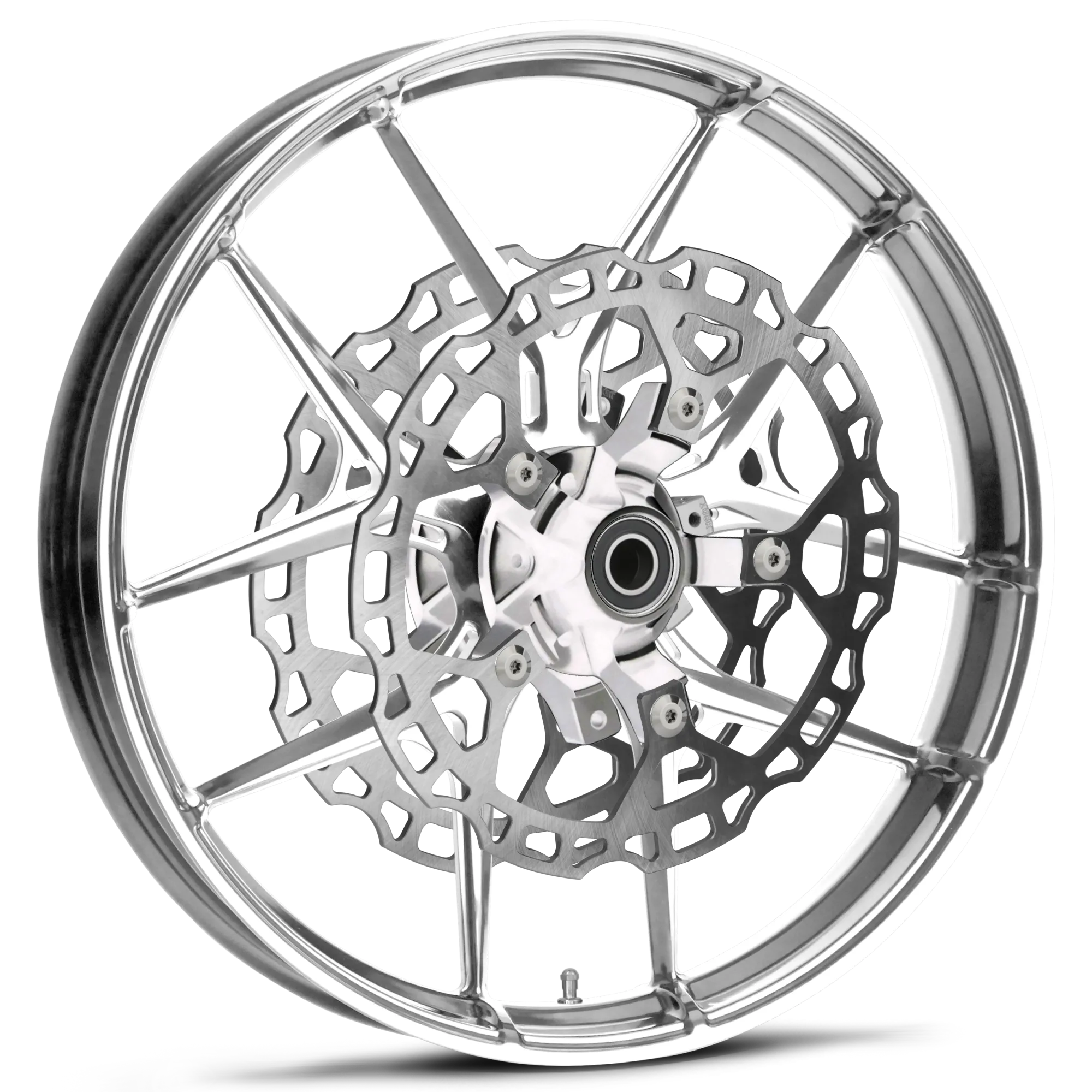 This Inductor Chrome 21 x 3.25 Wheel is an American made Forged wheel that is designed to give you the best ride possible! Made in California it starts with machining that’s twice as time-consuming as the standard motorcycle wheel for more depth and more detail! We all know the little details matter! It is then polished and sent to Chrome or Black anodize to give it that perfect shine!