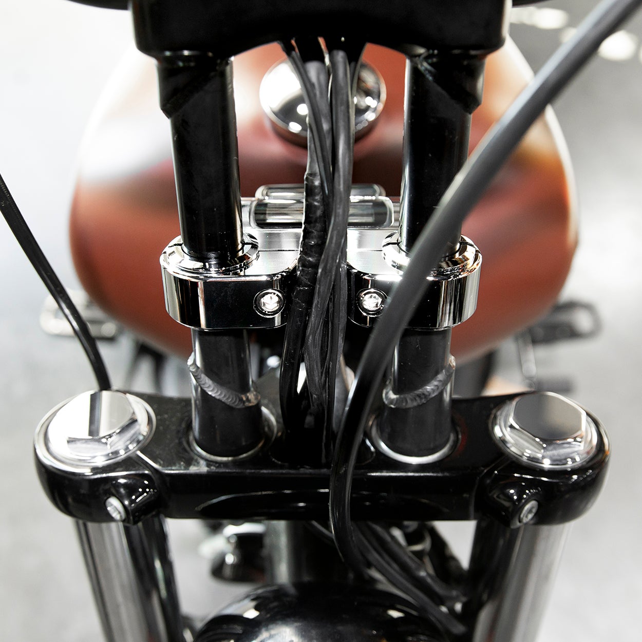 - One-piece 1-1/4-inch clamp fits around Tyson XL and comparably sized round bars and risers, and adjusts up or down to customize your Softail cockpit