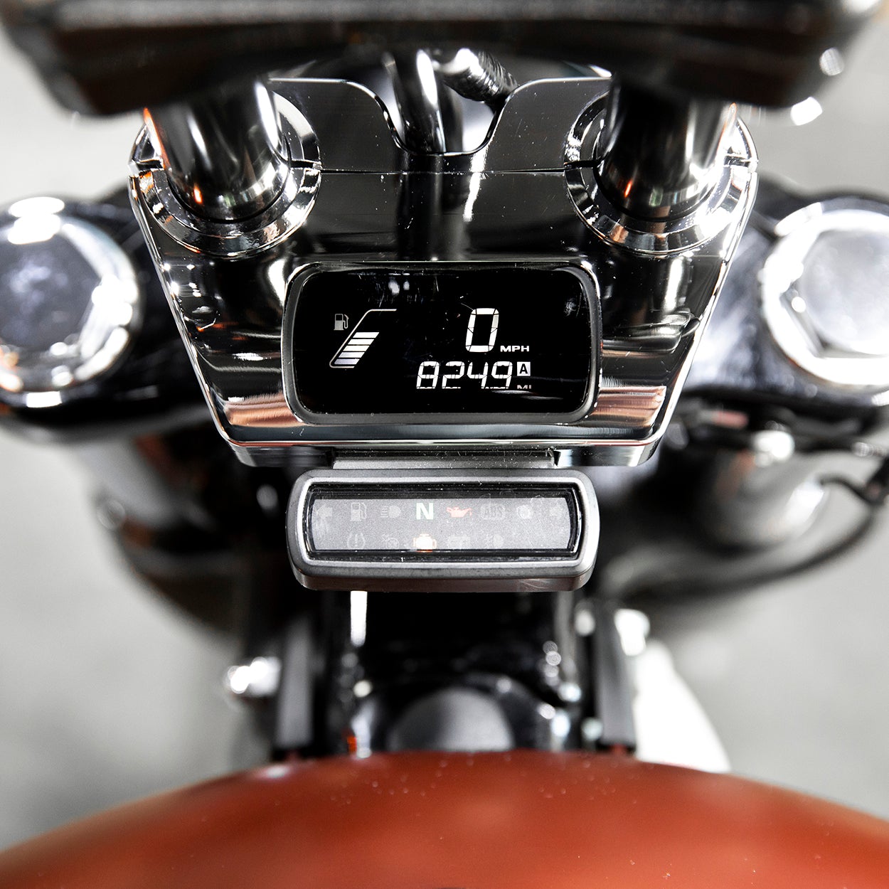 - Stock H-D digital dash module mounts inside Dash Panel with original-equipment screws