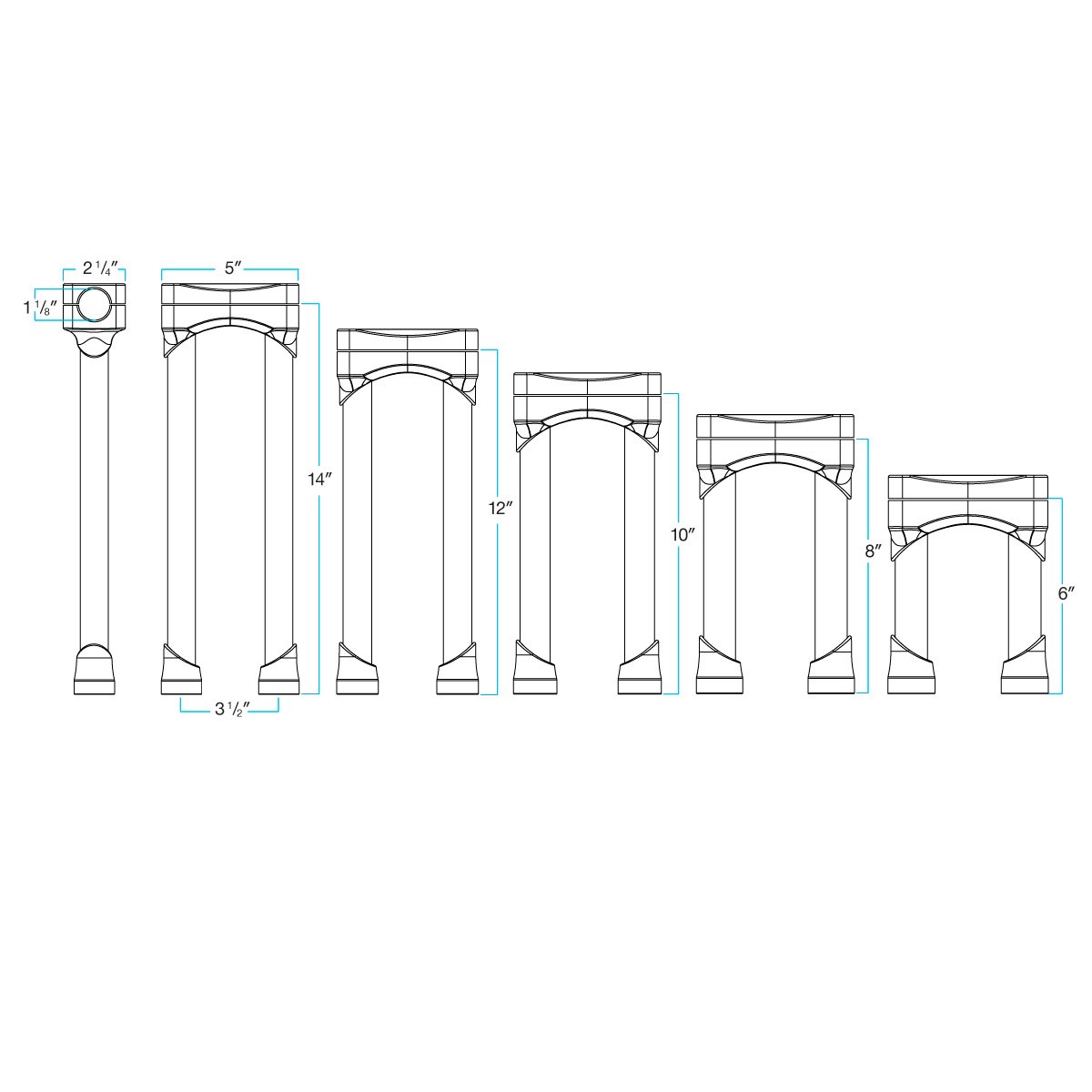 - Available in 6-inch, 8-inch, 10-inch, 12-inch, and 14-inch rise heights