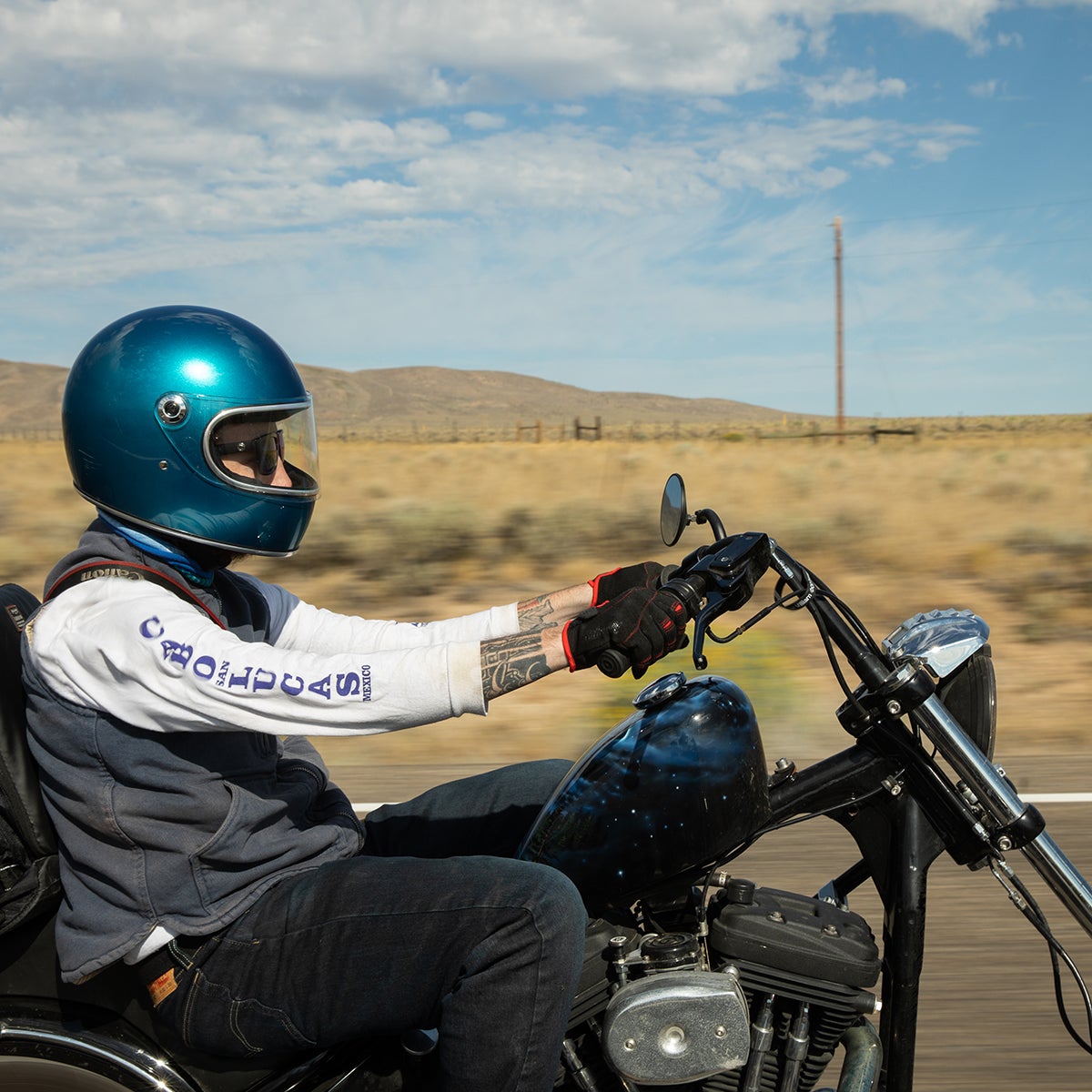 Rabbit ear style handlebars are easily identified by their severe backsweep toward the rider. Our RE-bar is faithful to this look without compromising comfort. Given their extremely narrow profile and somewhat radical style, RE-bars look best on rigid diggers and choppers with long, stretched girder or Narrow Glide forks, or any bike with a king-and-queen seat and a tall sissy bar. We’ve seen them on H-D XL’s with stock frames and long forks, but it’s a look that takes commitment to pull off—There’s no half-stepping with RE-bars on your freedom machine.