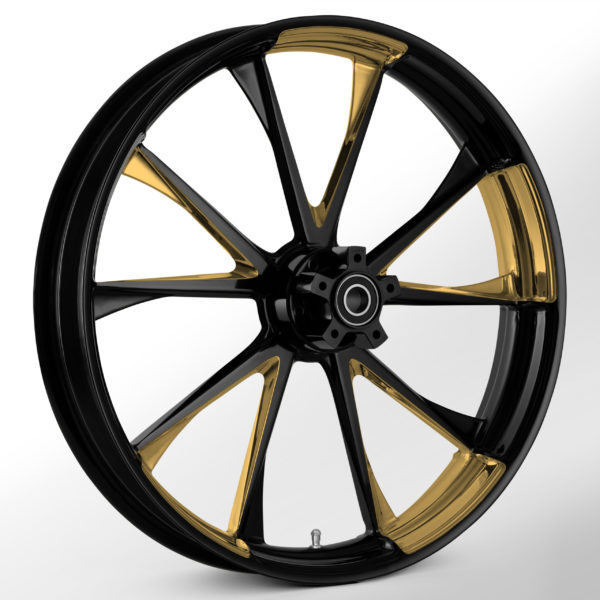 This Relay Dyeline Touch Of Color Gold 30 x 4.0 Wheel is an American made Forged wheel that is designed to give you the best ride possible! Made in California it starts with machining that’s twice as time-consuming as the standard motorcycle wheel for more depth and more detail! We all know the little details matter! It is then polished and sent to Chrome or Black anodize to give it that perfect shine!