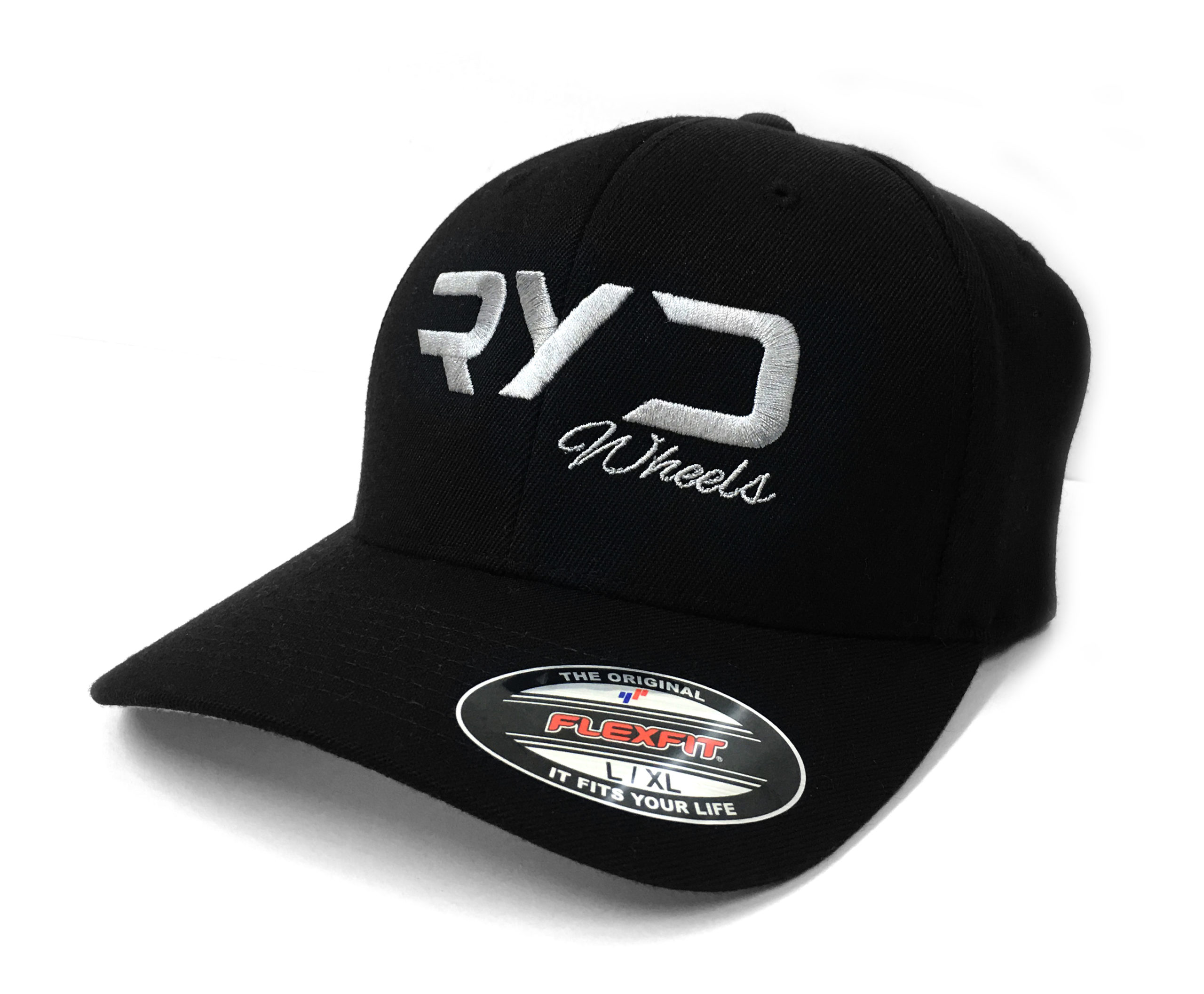 RYD Wheels Hat – Round Bill Large Fitted – Black with Silver Logo