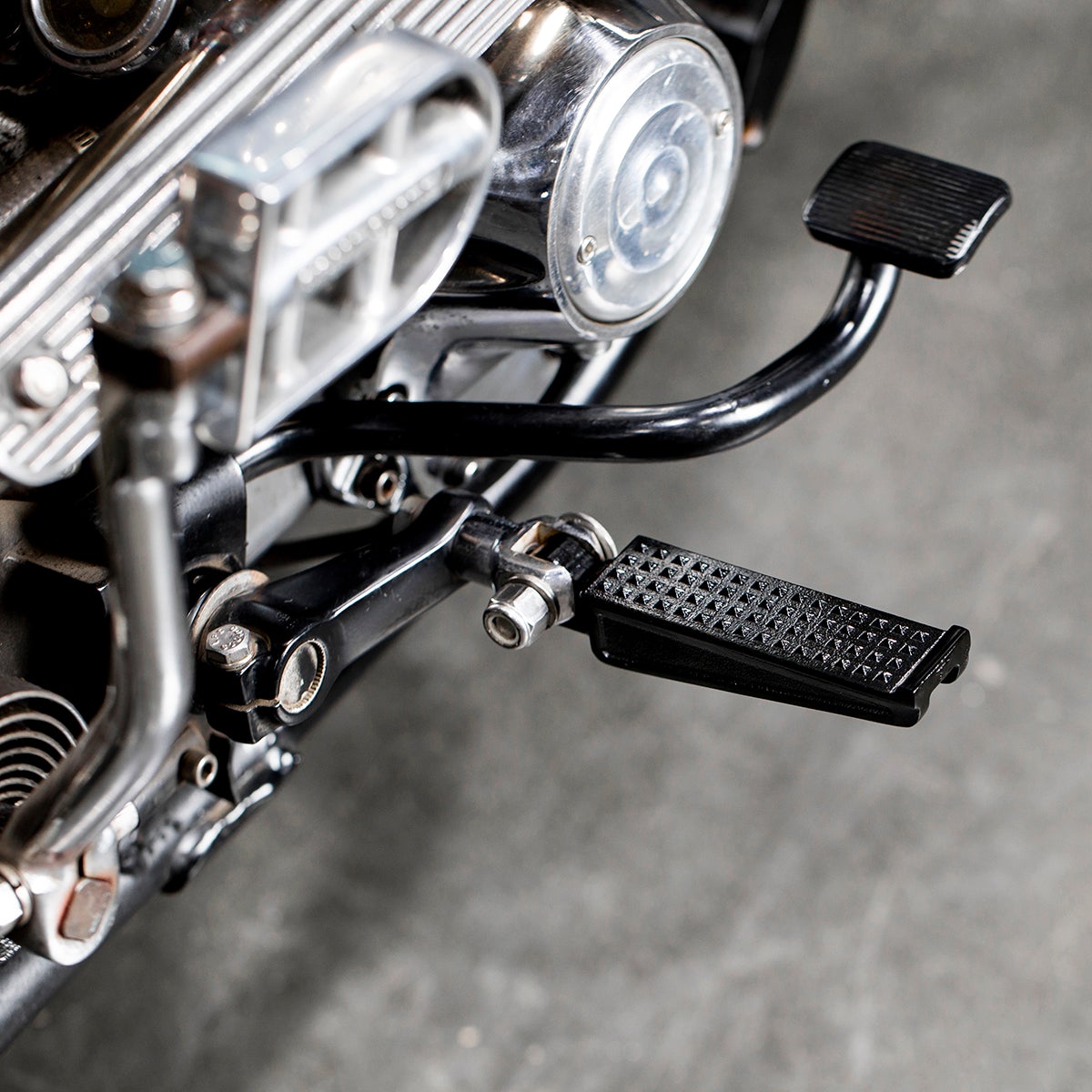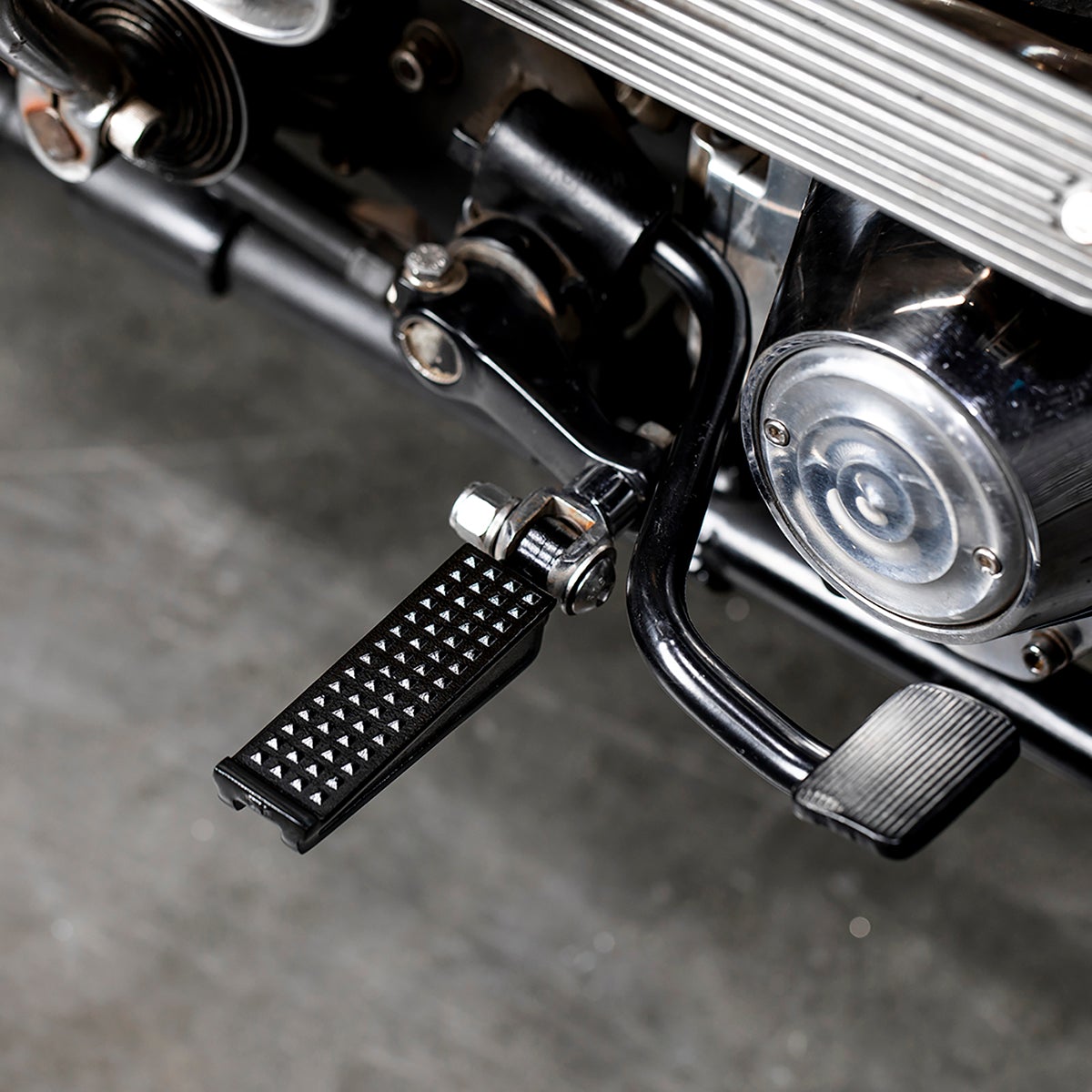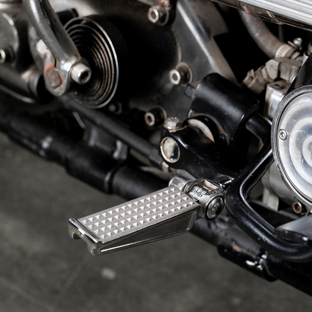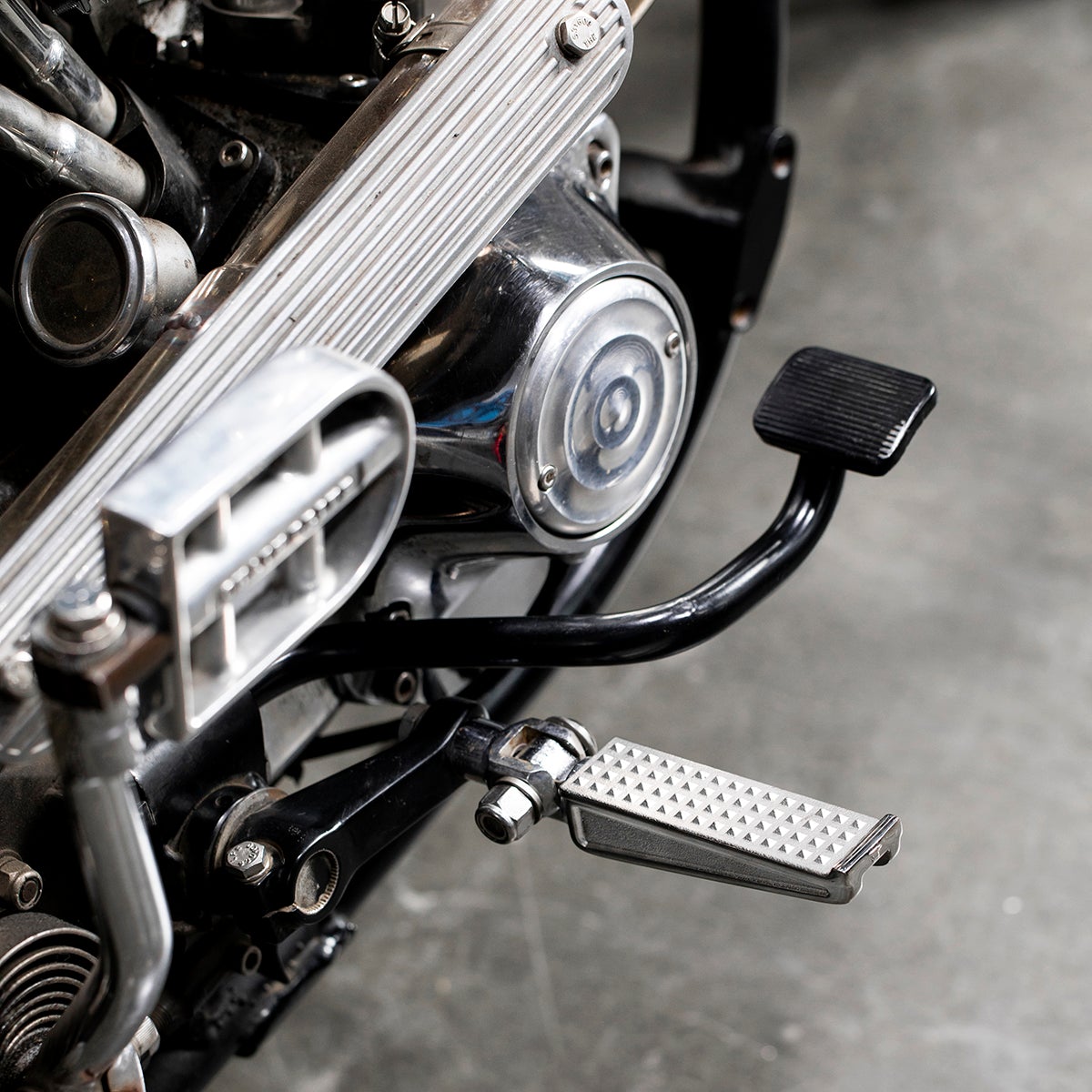 - Adjustable foot pegs constructed with investment-cast stainless steel