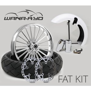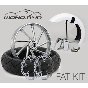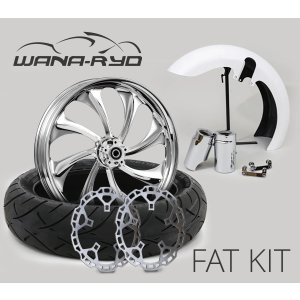 18 x 5.5″ Insulator Chrome Front Fat Tire Complete Wheel, Fender & Rotors Package, 2008-2023 Touring