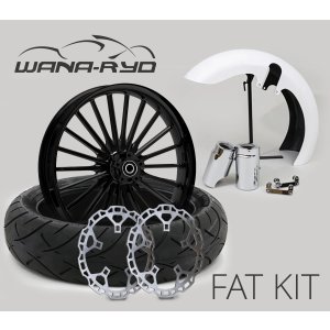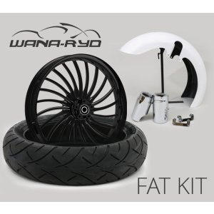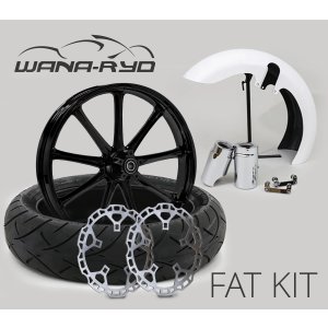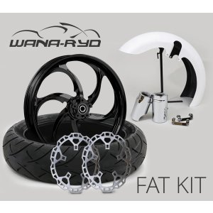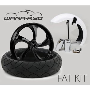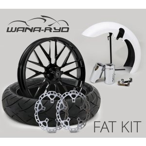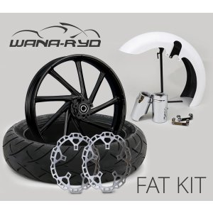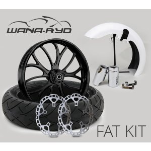 18 x 5.5″ Reactor Blackline Front Fat Tire Complete Wheel, Fender & Rotors Package, 2008-2023 Touring