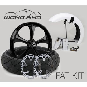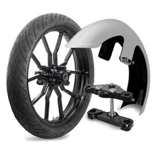 18 x 5.5″ Arc Blackline Front Fat Tire Complete Wheel, Fender & Rotors Package, 2008-2023 Touring