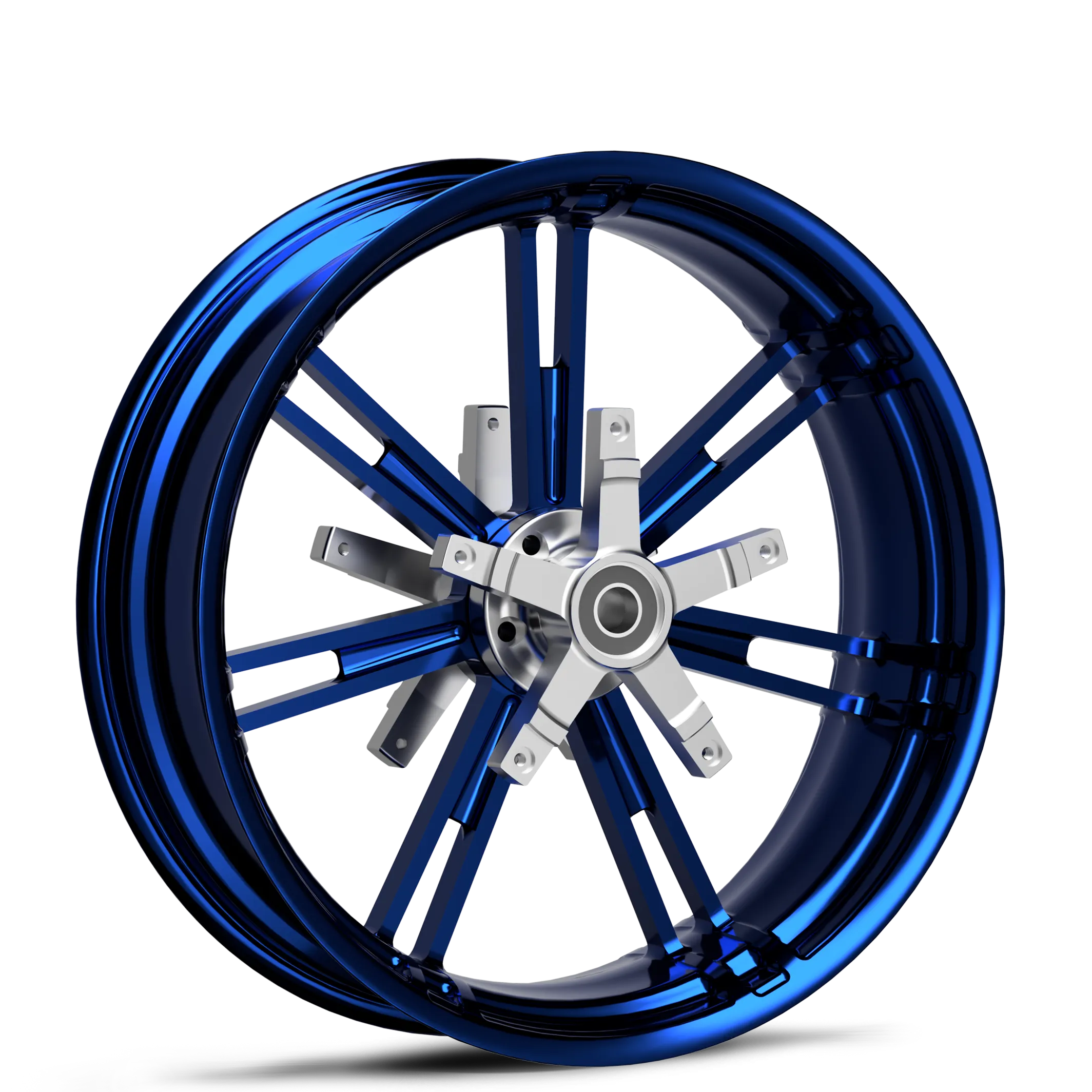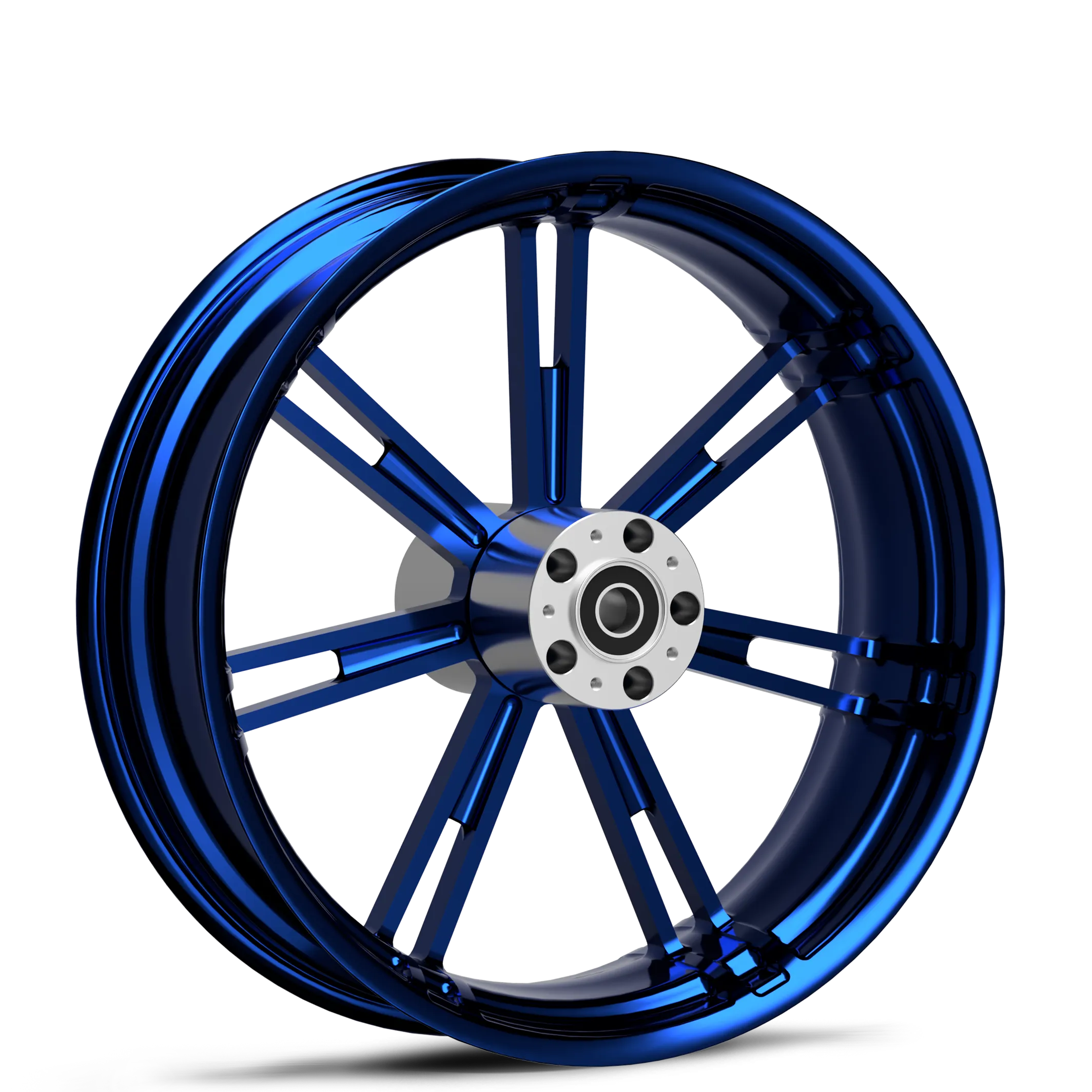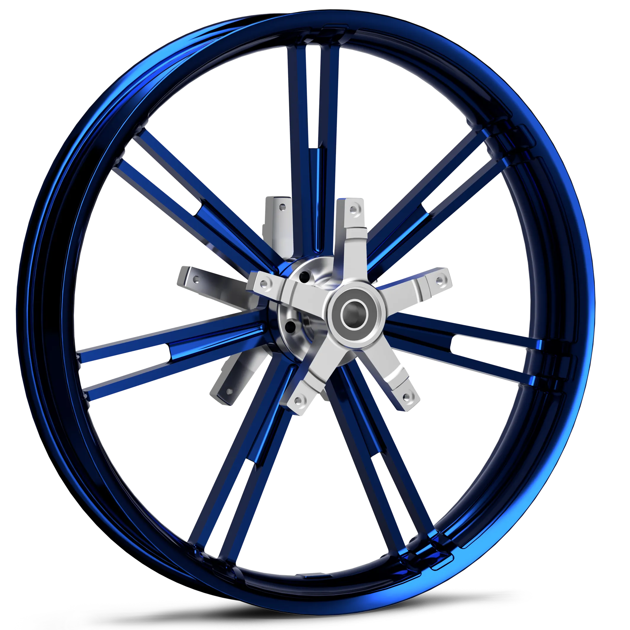 The Slicer offers 7 spokes with a slice down the middle of each one! The spokes travel to the outer lip (meeting the tire) to give eye-catching detail. This is a similar style wheel to the one that came on the 2018-2021 Road Glide Ultra.