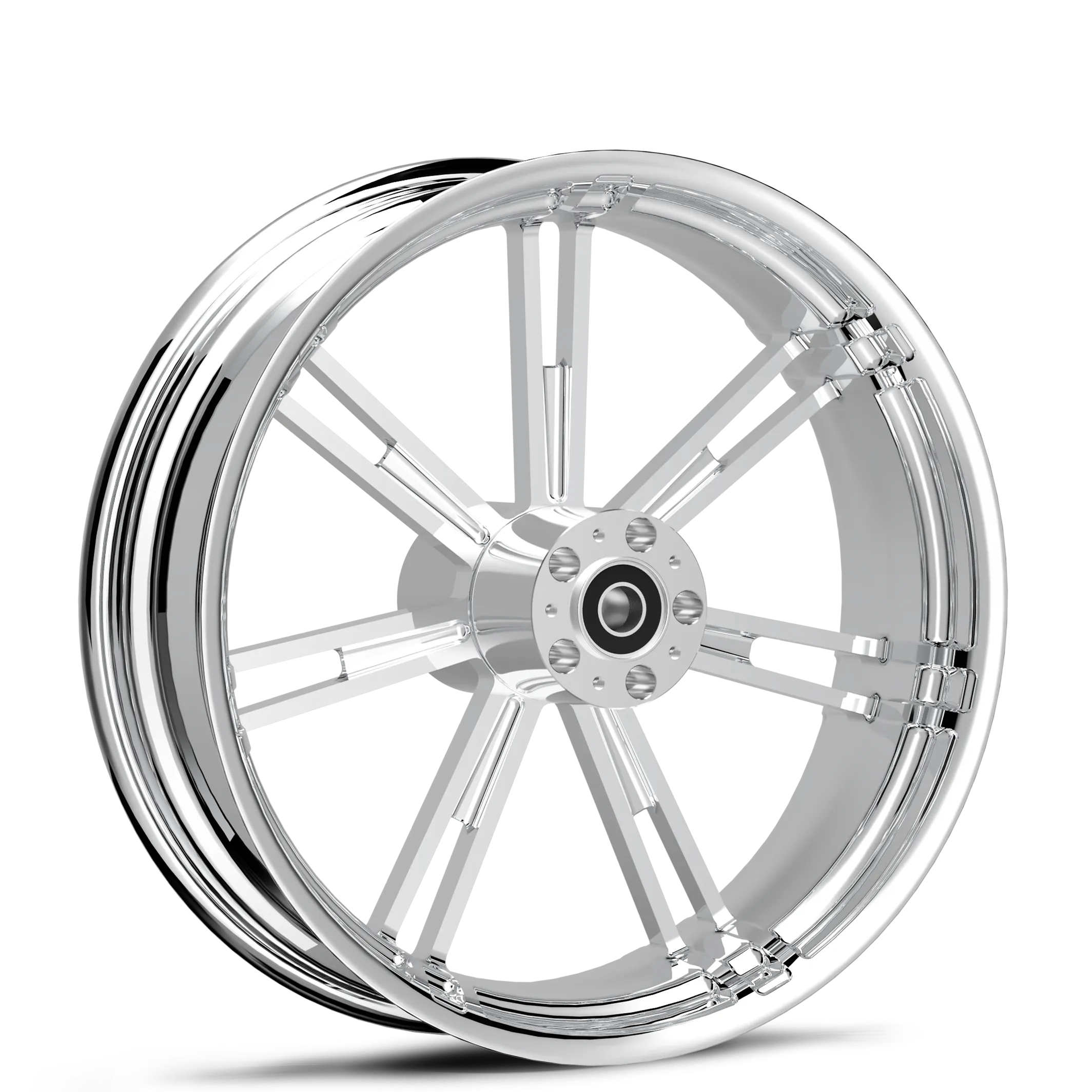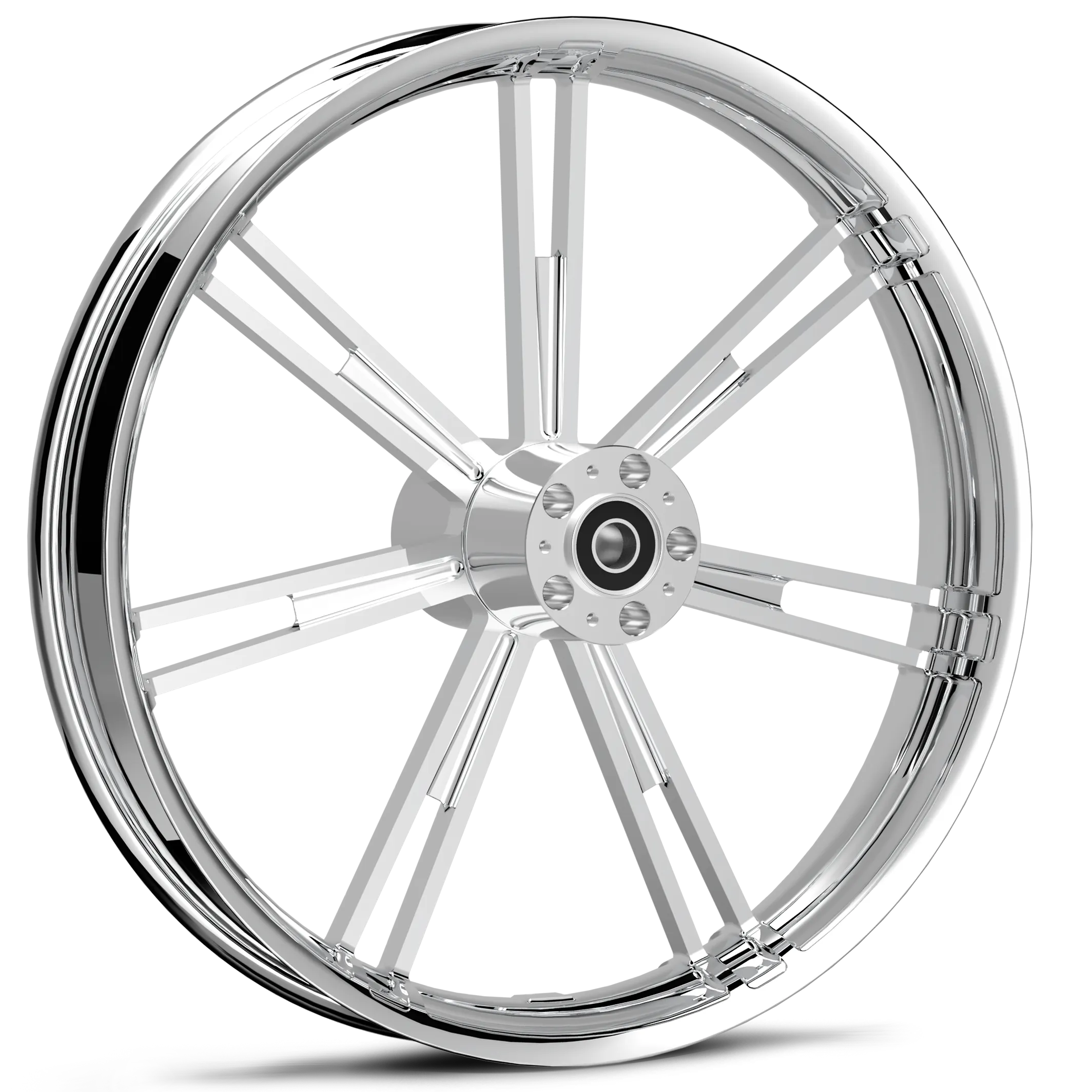 The Slicer offers 7 spokes with a slice down the middle of each one! The spokes travel to the outer lip (meeting the tire) to give eye-catching detail. This is a similar style wheel to the one that came on the 2018-2021 Road Glide Ultra.
