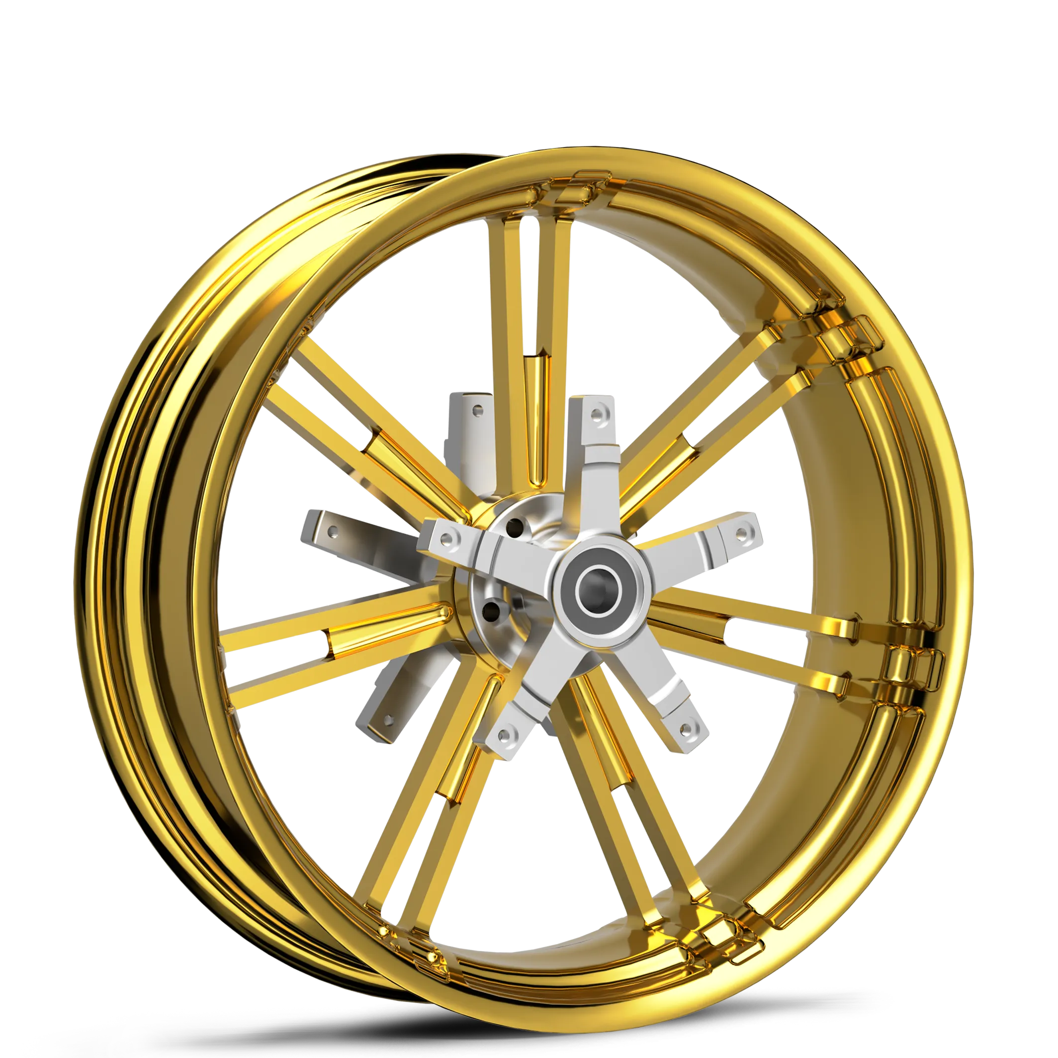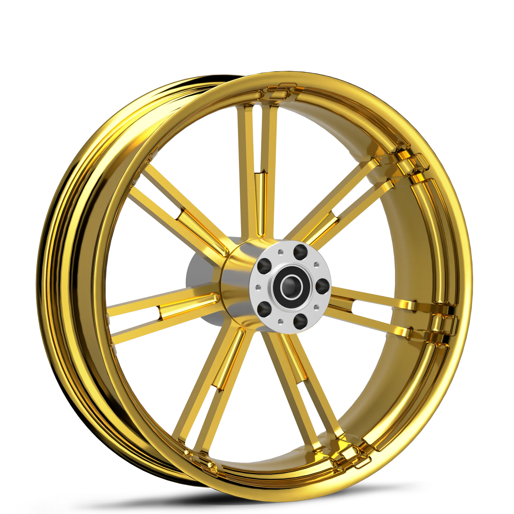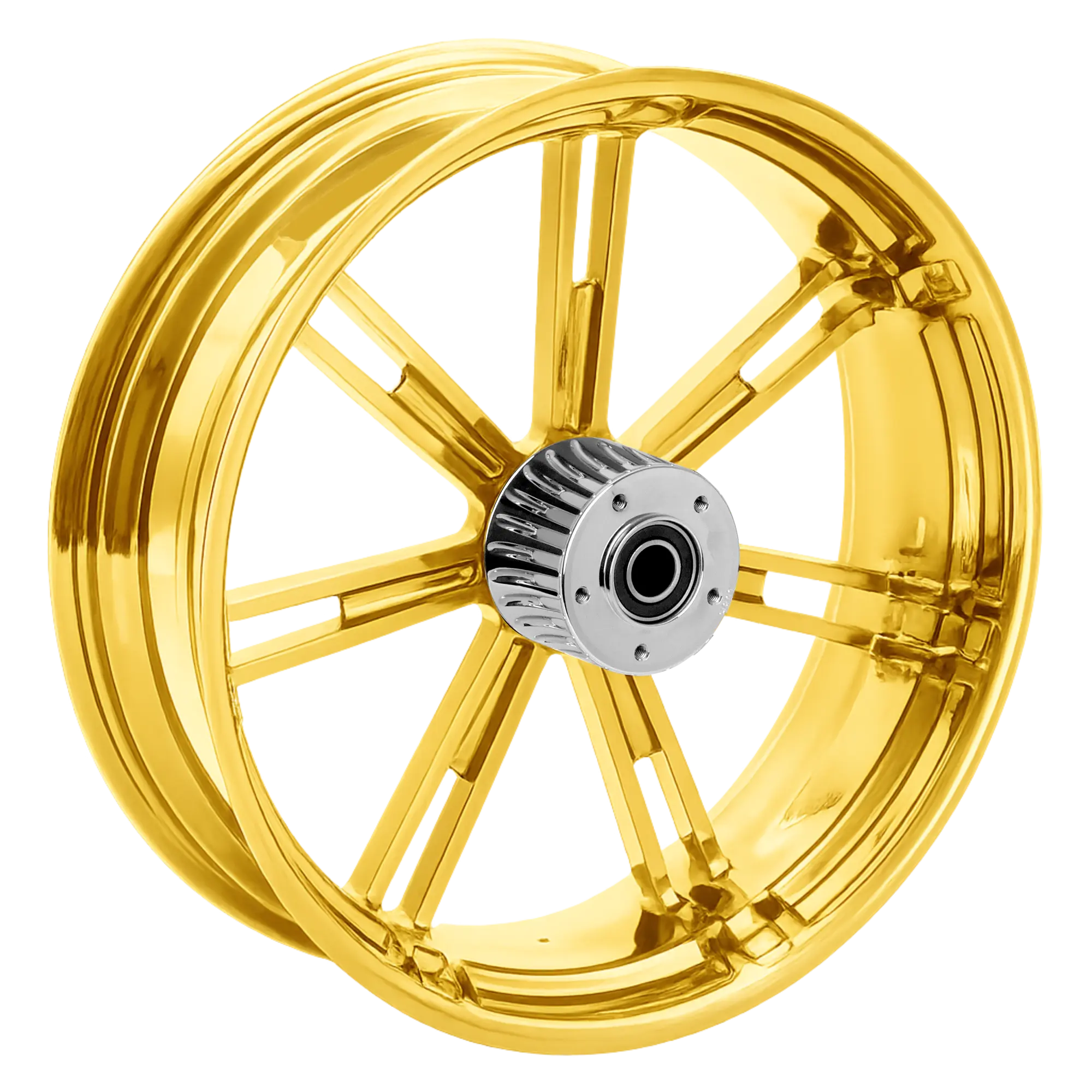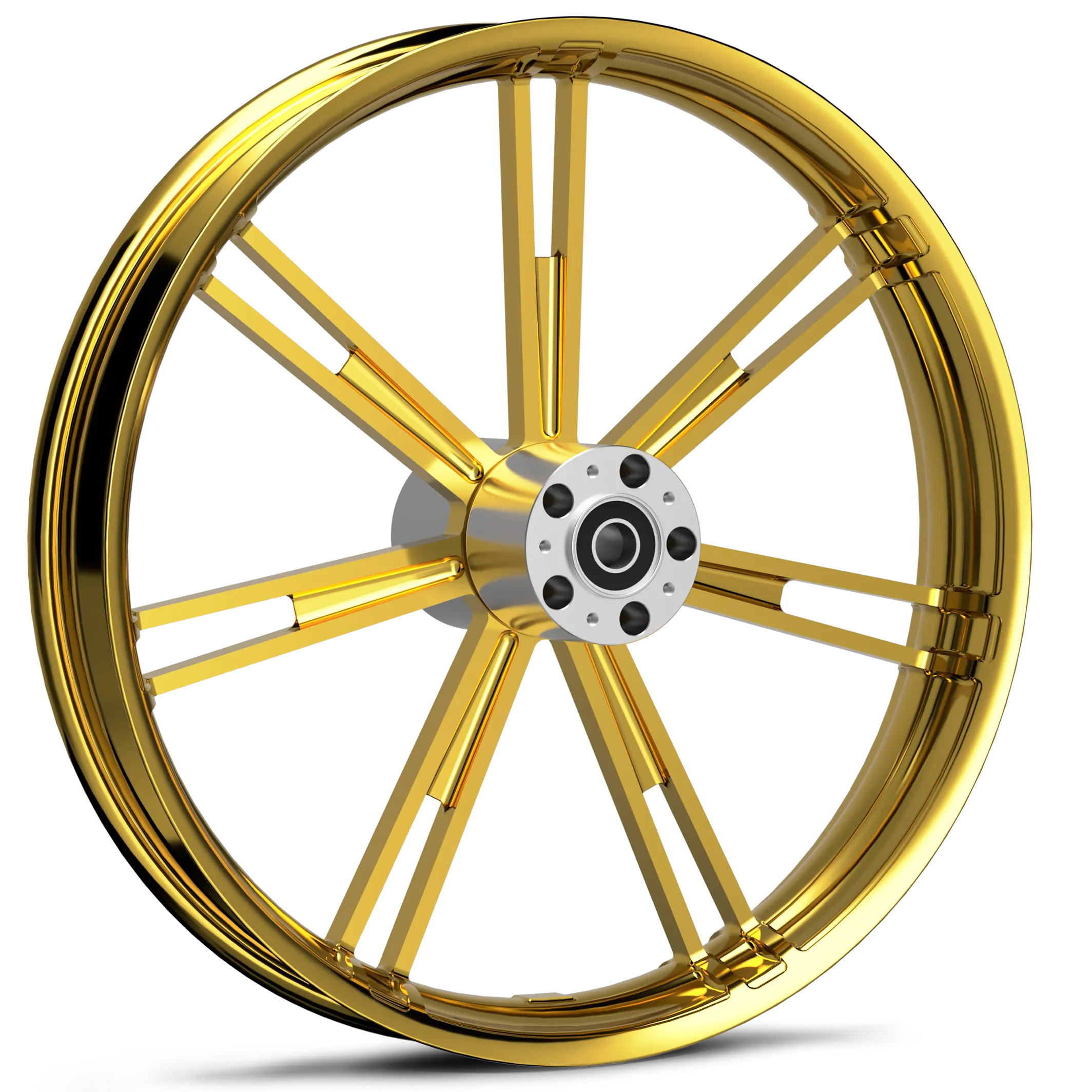 The Slicer offers 7 spokes with a slice down the middle of each one! The spokes travel to the outer lip (meeting the tire) to give eye-catching detail. This is a similar style wheel to the one that came on the 2018-2021 Road Glide Ultra.