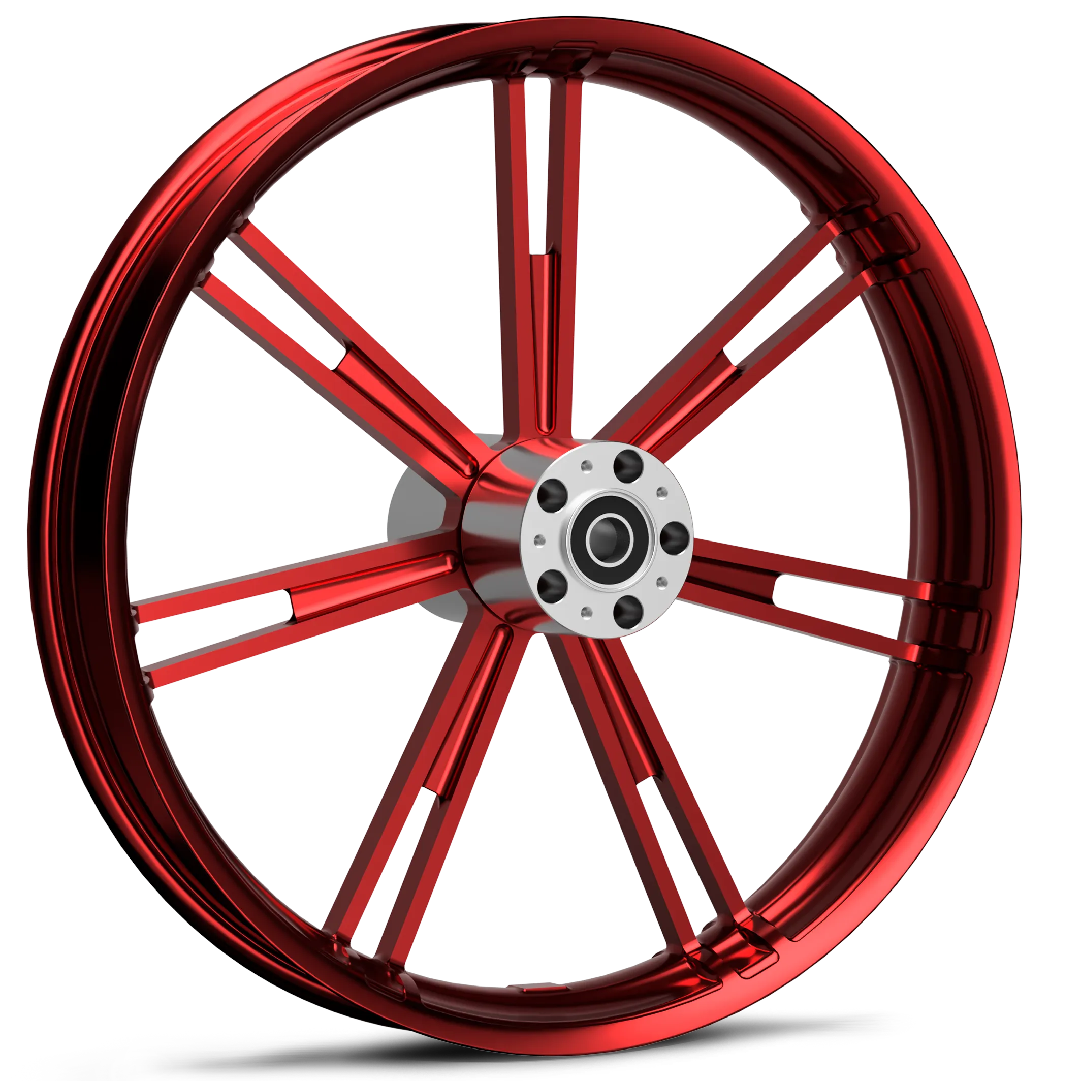 The Slicer offers 7 spokes with a slice down the middle of each one! The spokes travel to the outer lip (meeting the tire) to give eye-catching detail. This is a similar style wheel to the one that came on the 2018-2021 Road Glide Ultra.