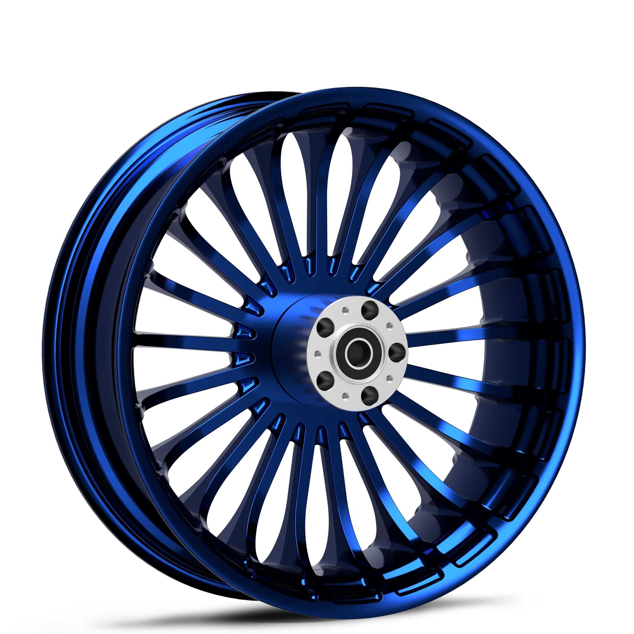 T6 6061 aluminum wheel blank is first sent to be CNC machined into the Turbine design. Then it’s passed along to be polished to