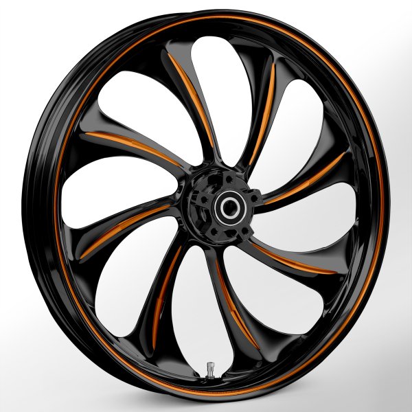 This Twisted Dyeline Touch Of Color Orange 18 x 10.0 Wheel is an American made Forged wheel that is designed to give you the best ride possible! Made in California it starts with machining that’s twice as time-consuming as the standard motorcycle wheel for more depth and more detail! We all know the little details matter! It is then polished and sent to Chrome or Black anodize to give it that perfect shine!