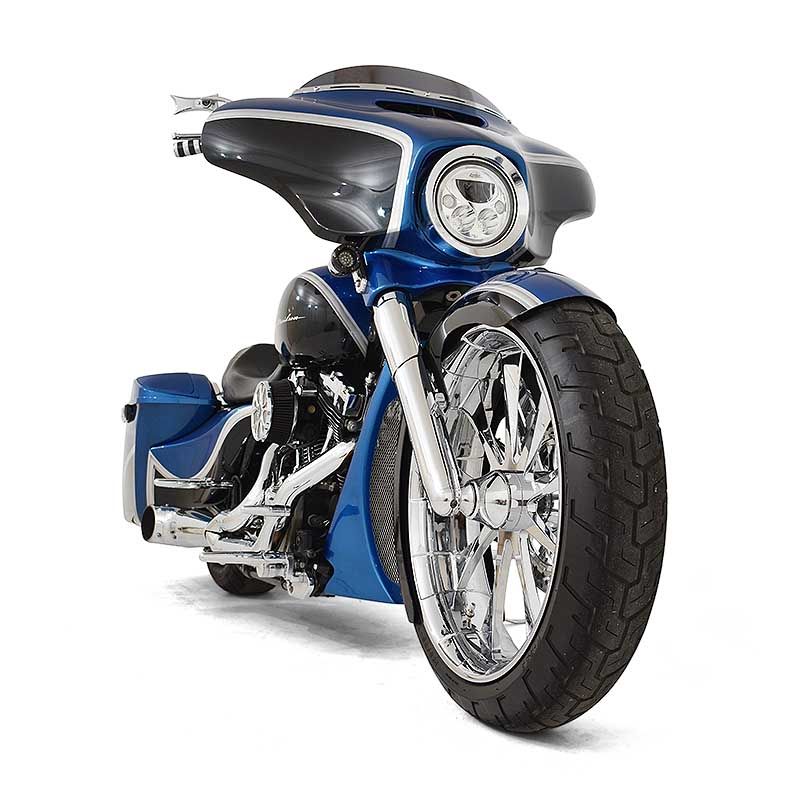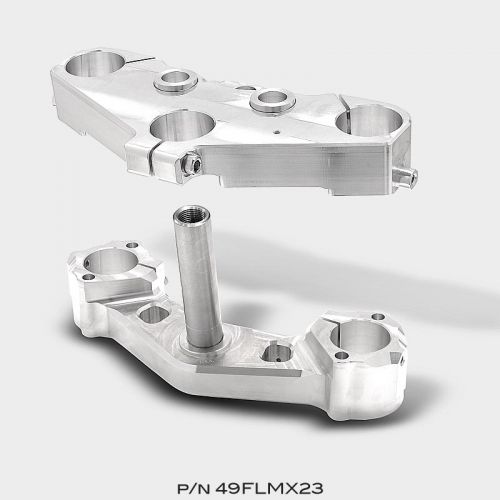 The X-23 by HHI is a BOLT-ON triple tree kit for a 23″ wheel or fat 21×5.5″ wheel installation on FL touring model bikes. The design geometry of this triple tree results in a trail measurement similar to stock factory HD speciifications. If you want a quick and easy, cost effective method of safely installing a 23″ wheel, this is the solution.